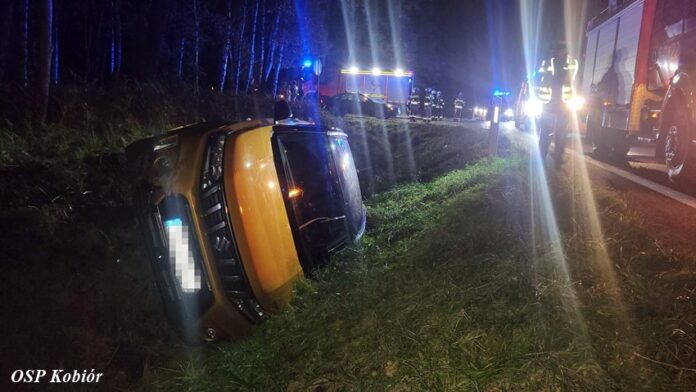28 października około godziny 20:50 dyżurny SK KM PSP Tychy otrzymał zgłoszenie o zdarzeniu drogowym na trasie DK 1 w Kobiórze na wysokości zjazdy do Zameczku Promnice. Na miejsce zdarzenia zadysponowane zostały zastępy OSP Kobiór, JRG Tychy oraz patrole Policji z Pszczyny i Tychów. Po przybyciu na miejsce zgłoszenie zostało potwierdzone. Z niewyjaśnionych przyczyn kierowca osobowego Suzuki zjechał do przydrożnego rowu. Na szczęście nie doznał ona żadnych obrażeń i nie wymagał pomocy medycznej. Po około czterdziestu minutach działania na miejscu zostały zakończone.