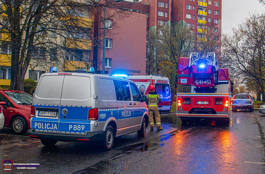 17 listopada ok. godz. 7:30 dyżurny SK KM PSP Tychy otrzymał zgłoszenie, że w jednym z mieszkań w budynku wielorodzinnym przy ul. Różyckiego znajduje się osoba potrzebująca pomocy. Na miejsce natychmiast zadysponowane zostały: ZRM, zastępy JRG Tychy oraz Policja. Po przybyciu na miejsce zgłoszenie zostało potwierdzone. Osoba trafiła pod opiekę ratowników medycznych. Po około czterdziestu minutach działania zostały zakończone.