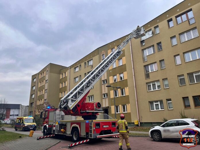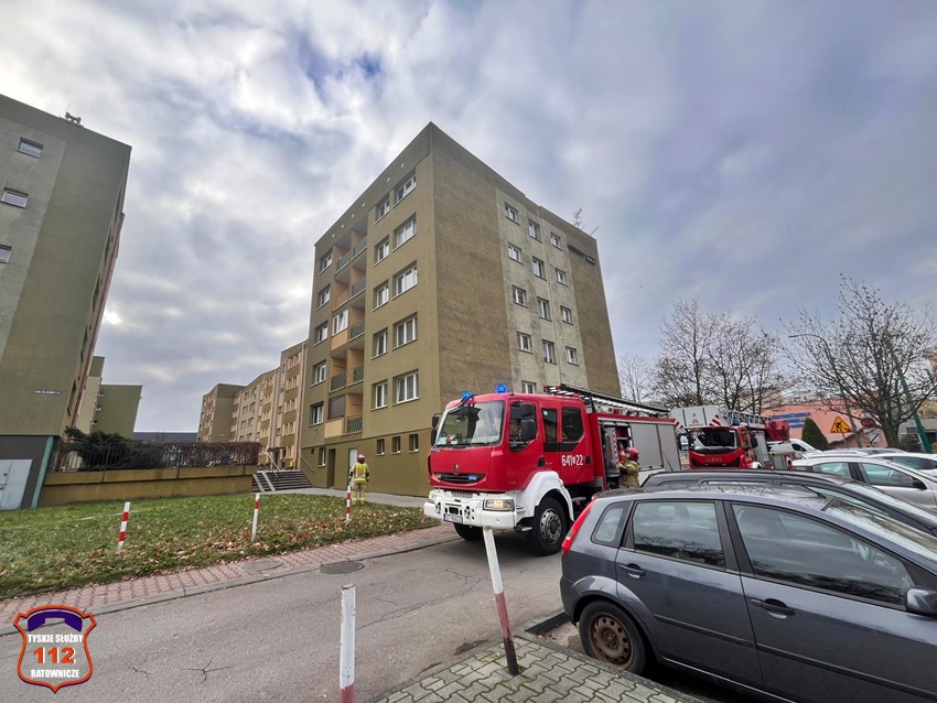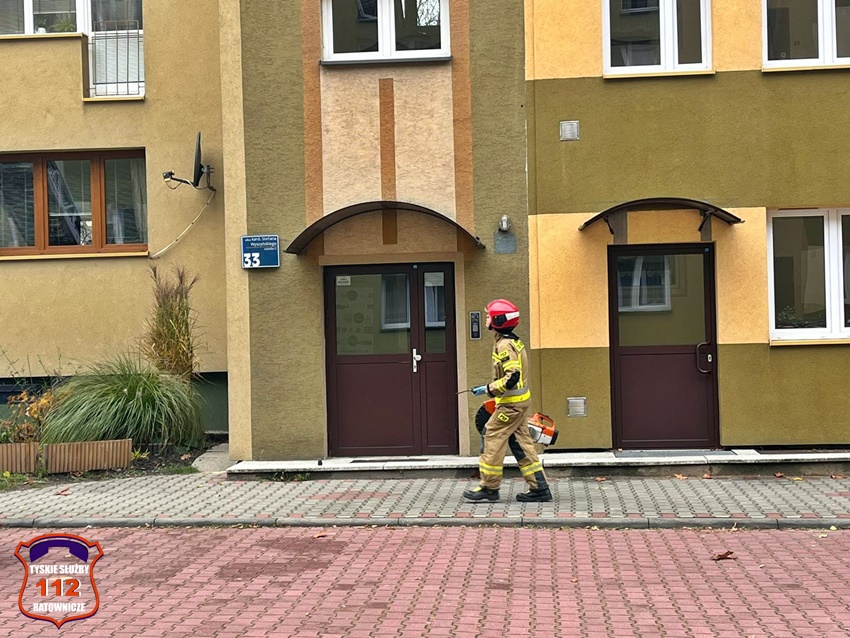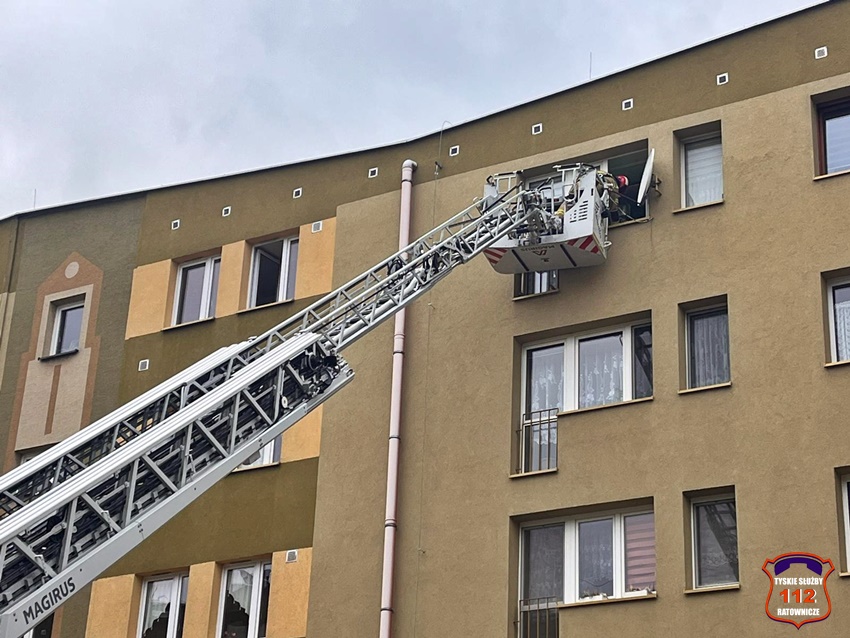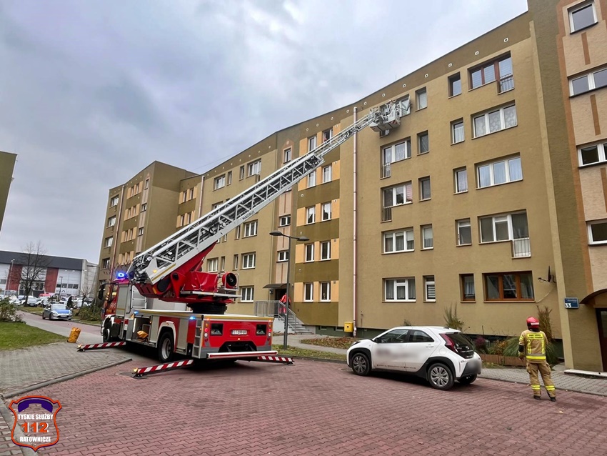 23 listopada ok. godz. 12:30 dyżurny SK KM PSP Tychy otrzymał zgłoszenie, że w jednym z mieszkań w budynku wielorodzinnym przy ul. Wyszyńskiego 35 znajduje się osoba potrzebująca pilnej pomocy. Na miejsce natychmiast zadysponowane zostały dwa zastępy JRG Tychy, ZRM oraz Policja. Po przybyciu na miejsce została podjęta decyzja o siłowym wejściu do mieszkania z kosza drabiny mechanicznej. Lokator trafił pod opiekę ratowników medycznych. Po około czterdziestu minutach działania zostały zakończone.