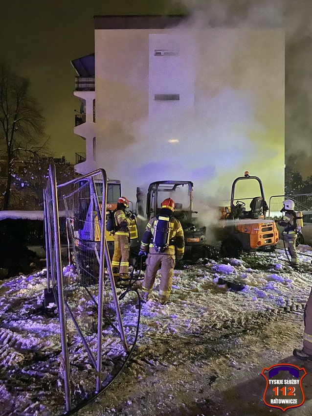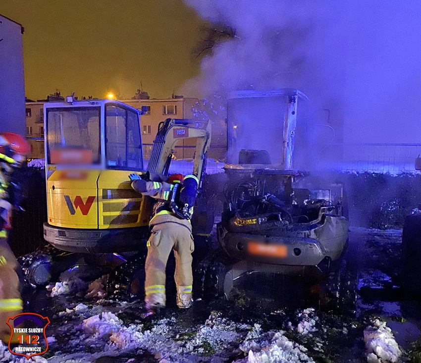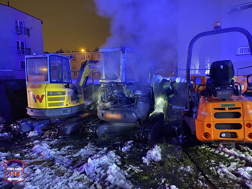 6 grudnia około godziny 1:25 dyżurny SK KM PSP Tychy otrzymał zgłoszenie o pożarze koparki na ul. Gwarków w Lędzinach. Na miejsce zgłoszenia natychmiast zadysponowane zostały zastępy strażaków OSP Lędziny i JRG Tychy oraz Policja. Po przybyciu na miejsce zgłoszenie zostało potwierdzone. Strażacy zastali rozwinięty pożar mini koparki, który przeniósł się już na drugą maszynę, która stała obok. Ze względu na duże zadymienie strażacy pracowali w aparatach ochrony układu oddechowego. Po około godzinie działania zostały zakończone. Trwa ustalanie przyczyn i okoliczności powstania pożaru.