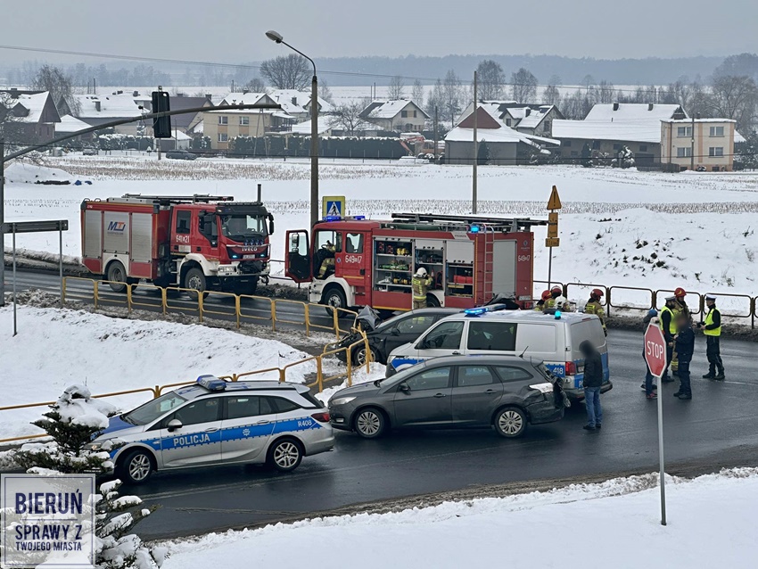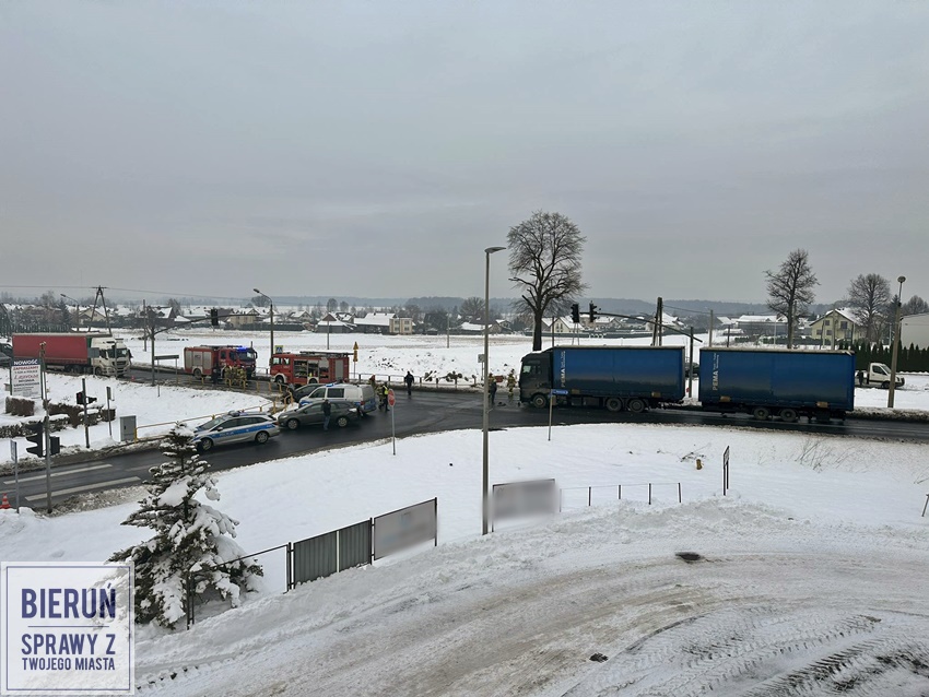 6 grudnia około godziny 10:15 na skrzyżowaniu ul. Pszenna – Warszawska – Turystyczna w Bieruniu doszło do zdarzenia drogowego z udziałem pięciu pojazdów. W zdarzeniu brały udział: Nissan, Ford, Opel, dostawcze Renault oraz ciągnik siodłowy Man z naczepą. Na miejsce zdarzenia zadysponowane zostały zastępy strażaków z OSP Bieruń Nowy i JRG Tychy oraz Policja. W trakcie działań ruch na skrzyżowaniu był całkowicie zablokowany. Ze wstępnych ustaleń pracujących na miejscu Policjantów wynika, że sprawcą zdarzenia jest kierowcą ciągnika siodłowego, który nie zachował należytej ostrożności i uderzył w poprzedzające go pojazdy. Na szczęście w wyniku zdarzenia nikt nie ucierpiał. Po wykonaniu wstępnych czynności uszkodzone pojazdy zostały usunięte ze skrzyżowania, a ruch został przywrócony. Policjanci KPP Bieruń prowadzą dalsze postępowanie w tej sprawie.