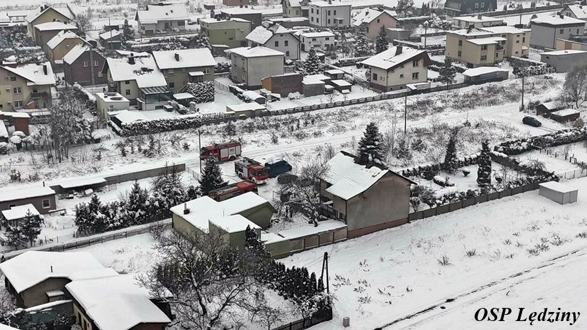 9 grudnia około godziny 10:15 dyżurny SK KM PSP Tychy otrzymał zgłoszenie o pożarze w jednym z domów przy ul. Lędzińskiej w Lędzinach. Na miejsce zgłoszenia zadysponowane zostały zastępy strażaków OSP Lędziny i JRG Tychy. Po przybyciu na miejsce zgłoszenia zostało potwierdzone. Pożarem objęte były śmieci składowane w jednym z pomieszczeń w budynku gospodarczym. Strażacy w aparatach ochrony układu oddechowego przystąpili do działań i po kilkunastu minutach sytuacja została opanowana. Trwa ustalanie przyczyn i okoliczności tego pożaru.