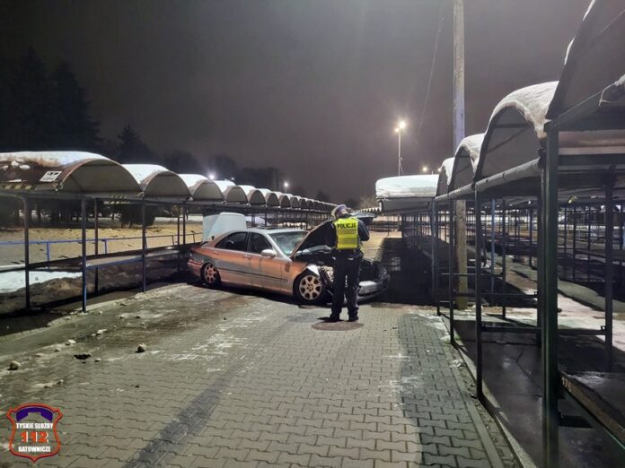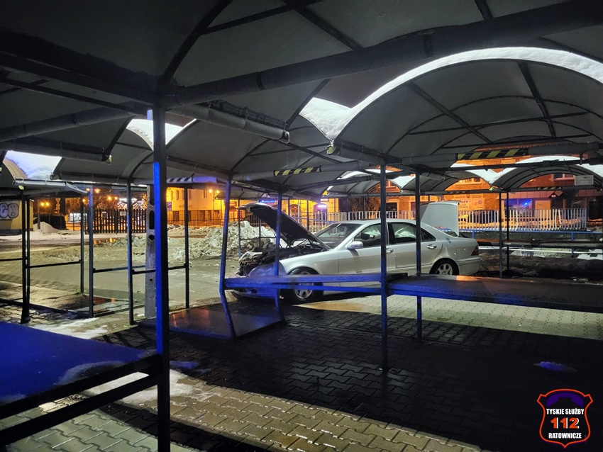 10 grudnia około godziny 21 dyżurny SK KM PSP Tychy otrzymał zgłoszenie od Policji z prośbą o neutralizację plamy płynów eksploatacyjnych z rozbitego pojazdu na terenie targowiska przy ul. Kapicy. Na miejsce zadysponowany został zastęp strażaków JRG Tychy. Jak się okazało kierujący osobowym Mercedesem wjechał na teren targowiska i staranował regały handlowe. W wyniku zdarzenia kierowca Mercedesa (obywatel Ukrainy) nie doznał obrażeń. Działania strażaków polegały na odłączeniu akumulatora w rozbitym pojeździe, zakręceniu butli LPG oraz sorpcji płynów eksploatacyjnych. Badanie alkomatem wykazało u niego 1,27 mg/l co daje ponad 2,6 promila. Mężczyzna został zatrzymany, a jego pojazd odholowany na policyjny parking. Policjanci KMP Tychy prowadzą dalsze postępowanie w tej sprawie.