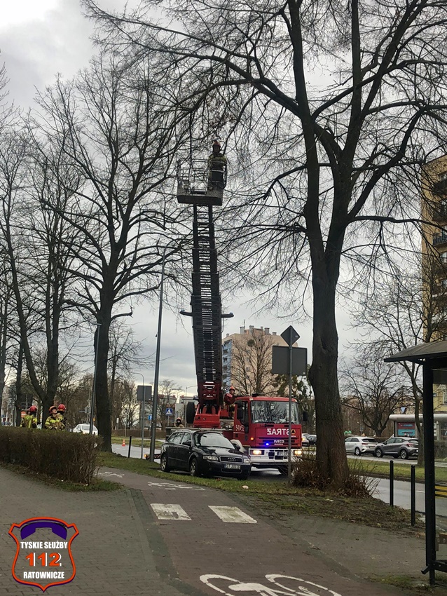 25 grudnia około godziny 11:30 dyżurny SK KM PSP Tychy otrzymał zgłoszenie o naderwanej gałęzi drzewa na wysokości kilku metrów przy al. Bielskiej 99. Na miejsce zgłoszenia zadysponowane zostały zastępy strażaków JRG Tychy. Po przybyciu na miejsce zgłoszenie zostało potwierdzone. Na czas działań ruch w kierunku browaru został zablokowany. Strażacy po sprawieniu drabiny mechanicznej z jej kosza zdjęli gałąź, zażegnując niebezpieczeństwo. Działania na miejscu trwały około trzydziestu minut.