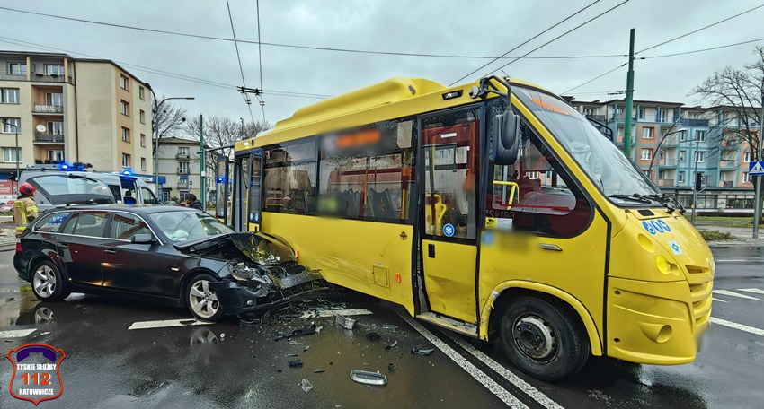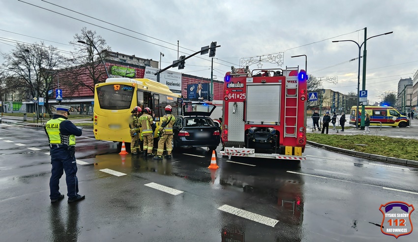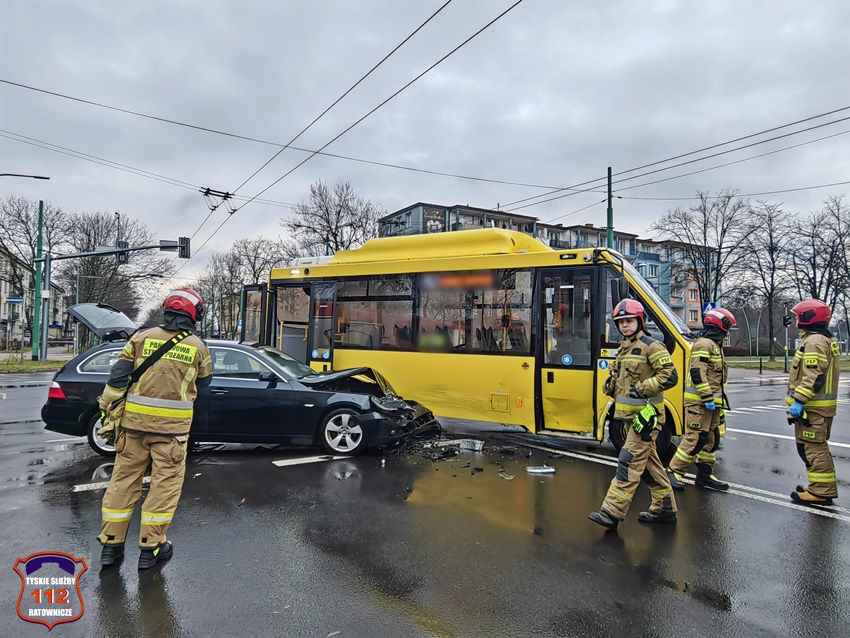 1 stycznia około godziny 14:30 na skrzyżowaniu al. Niepodległości z ul. Grota – Roweckiego doszło do zdarzenia drogowego z udziałem busa komunikacji miejskiej marki Iveco MMi oraz osobowego BMW. W wyniku zdarzenia ruch na skrzyżowaniu został częściowo zablokowany. Na miejsce zdarzenia wezwane zostały zastępy JRG Tychy, ZRM oraz patrole WRD KMP Tychy. Trzy osoby podróżujące osobówką oraz kierowca busa trafiły pod opiekę ratowników medycznych ale na szczęście ich obrażeni nie wymagały hospitalizacji. Z ustaleń pracujących na miejscu Policjantów jak i relacji uczestników zdarzenia sprawcą zdarzenia jest kierowca busa komunikacji miejskiej (obywatel Indii), który wykonując manewr skrętu w lewo z al. Niepodległości w ul. Grota – Roweckiego wymusił pierwszeństwo na kierowcy BMW jadącemu na wprost al. Niepodległości w kierunku trasy DK 1. Dodatkowo na miejsce wezwane zostało pogotowie techniczne PKM Tychy. Sprawca zdarzenia został ukarany mandatem karnym w kwocie 1,5tys i 10 pkt. karnymi. Uszkodzone pojazdy zostały odholowane przez wezwane na miejsce holowniki pomocy drogowych. Działania służb ratunkowych na miejscu zdarzenia trwały ponad godzinę.
