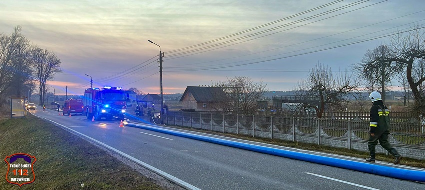 5 stycznia około godziny 14:30 dyżurny SK KM PSP Tychy otrzymał zgłoszenie o zalanej posesji przy ul. Żubrów w Międzyrzeczu. Na miejsce zgłoszenia zadysponowany został zastęp strażaków OSP Międzyrzecze. Po przybyciu na miejsce zgłoszenie zostało potwierdzone. Okazało się, że potrzebne będą dodatkowe siły i środki. Do działań zadysponowane zostały zastępy OSP Bojszowy z agregatem pompowym dużej wydajności oraz zastęp KM PSP Tychy. W związku z koniecznością zamknięcia jednego pasa ruchu do pomocy w kierowaniu ruchem wezwany został patrol ruchu drogowego KPP Bieruń. Działania na miejscu trwały około pięciu godzin.