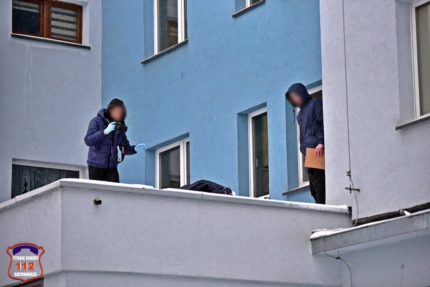 7 stycznia około godziny 7:30 dyżurny KMP Tychy otrzymał zgłoszenie, że na dachu nad wyjściem z klatki schodowej budynku wielorodzinnego przy al. Jana Pawła II leży mężczyzna. Ze zgłoszenia wynikało, że obrażenia mężczyzny mogą wskazywać na upadek z wysokości. Na miejsce zgłoszenia natychmiast zadysponowane zostały: Policja, ZRM oraz zastępy strażaków JRG Tychy. Po przybyciu na miejsce zgłoszenie zostało potwierdzone. Niestety obrażenia jakich doznał mężczyzna okazały się śmiertelne w skutkach. Ze wstępnych ustaleń pracujących na miejscu Policjantów wynika, że mężczyzna (59 lat) najprawdopodobniej wyskoczył z okna na dziewiątym piętrze budynku (klatka schodowa). Policjanci KMP Tychy pod nadzorem prokuratury prowadzą postępowanie w tej sprawie.