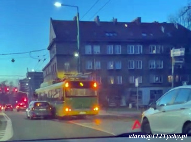 29 stycznia około godziny 16:25 na ul. Budowlanych w rejonie skrzyżowania z ul. Batorego doszło do zdarzenia drogowego z udziałem trolejbusa (Solaris) oraz samochodu osobowego (Fiat). W wyniku zdarzenia nikt nie ucierpiał. Uczestnicy zdarzenia wezwali na miejsce Policję. Z ustaleń pracujących na miejscu Policjantów wynika, że sprawcą zdarzenia jest kierowca pojazdu komunikacji miejskiej, który włączając się do ruchu z zatoki przystankowej nie ustąpił pierwszeństwa kierowcy osobówki i uderzył w jego bok. Utrudnienia w ruchu w miejscu zdarzenia trwały ponad godzinę. Policjanci KMP Tychy prowadzą dalsze postępowanie w tej sprawie.