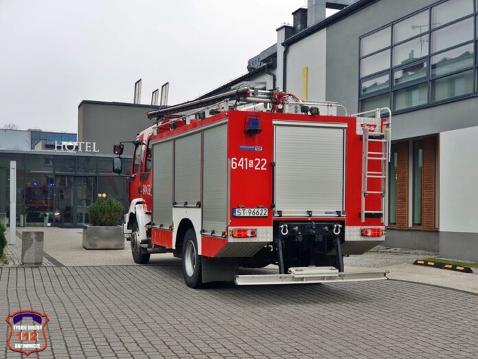 17 lutego około godziny 14:45 dyżurny SK KM PSP Tychy otrzymał zgłoszenie z systemu pożarowego hotelu przy ul. Ch. de Gaulle’a o zagrożeniu pożarowym. Na miejsce natychmiast zadysponowane zostały zastępy strażaków JRG Tychy. Po przybyciu na miejsce i rozpoznaniu nie znaleziono źródła pożaru. Alarm został zakwalifikowany jako fałszywy. Działania na miejscu trwały około trzydziestu minut.