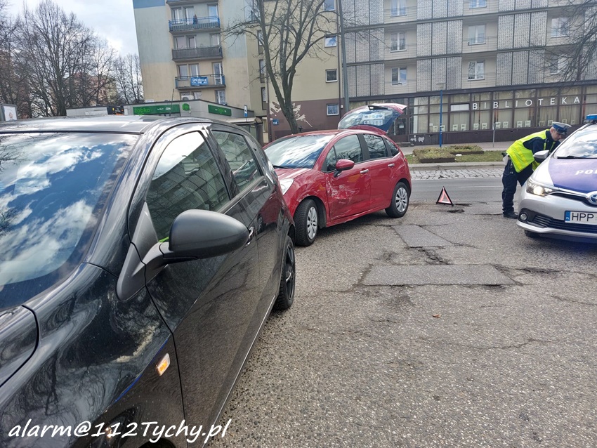 4 marca około godziny 13:30 dyżurny KMP Tychy otrzymał zgłoszenie o kolizji drogowej na al. Niepodległości w rejonie Urzędu Miasta. W zdarzeniu brały udział Citroen oraz Chevrolet. Uczestnicy zdarzenia wezwali na miejsce patrol Policji i zjechali na tzw. nawrotkę. Z ustaleń pracujących na miejscu Policjantów wynika, że sprawcą zdarzenia jest kierująca Citroenem kobieta, która jadąc prawym pasem w kierunku skrzyżowania z ul. Darwina postanowiła zawrócić na nawrotce i zajechała drogę jadącemu lewym pasem kierowcy Chevroleta. Na szczęście w wynika zdarzenia nikt nie ucierpiał. Policjanci KMP Tychy prowadzą dalsze postępowanie w tej sprawie.