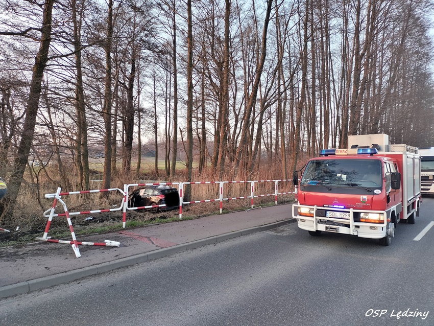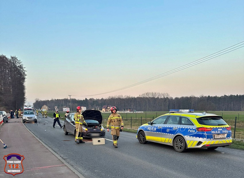 8 marca około godziny 17 na ul. Lędzińskiej w Lędzinach doszło do zdarzenia drogowego z udziałem dwóch samochodów osobowych marki Ford. W wyniku zderzenia jeden z pojazdów wypadł z drogi i zatrzymał się w pobliskim rowie. Na miejsce zdarzenia wezwane zostały: ZRM, zastępy strażaków OSP Lędziny i JRG Tychy oraz Policja. W trakcie działań ratunkowych ruch był całkowicie zablokowany. Z ustaleń pracujących na miejscu Policjantów jak i relacji świadków zdarzenia wynika, że 34 – letni kierujący Fordem Fokusem podczas wykonywania manewru wyprzedzania nie zachował należytej ostrożności i uderzył w jadącego z naprzeciwka Forda Fiestę. Po zderzeniu Ford Fokus uderzył w barierki i wylądował w rowie. Działania służb ratunkowych w miejscu zdarzenia trwały blisko trzy godziny. Policjanci KPP Bieruń prowadzą dalsze postępowanie w tej sprawie.