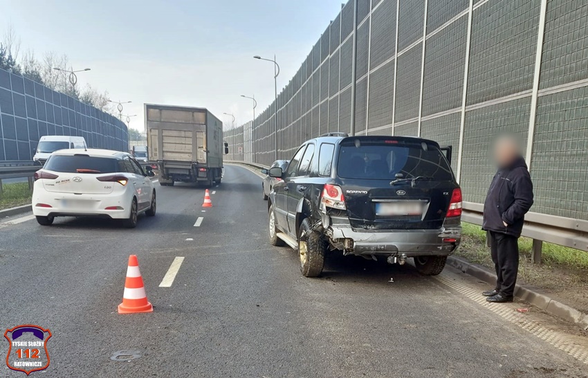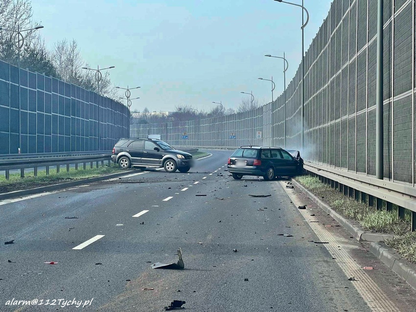 14 marca około godziny 9:40 na ul. Beskidzkiej pomiędzy węzłem z DK 44, a ul. Edukacji w kierunku Pszczyny doszło do zdarzenia drogowego z udziałem dwóch samochodów osobowych. W zdarzeniu brały udział Kia oraz Audi. Na miejsce zdarzenia wezwane zostały: ZRM, zastęp strażaków JRG Tychy oraz patrol Policji. W związku ze zdarzeniem ruch został zablokowany. Osoby podróżujące pojazdami trafiły pod opiekę ratowników medycznych. Ze wstępnych ustaleń pracujących na miejscu Policjantów wynika, że sprawcą zdarzenia jest kierująca samochodem Kia, która wykonując manewr zmiany pasa ruchu z prawego na lewy zajechał drogę kierującemu Audi, który jechał lewym pasem. W wyniku zderzenia pojazdów oba pojazdy uderzyły dodatkowo w bariery energochłonne. Utrudnienia w ruchu w miejscu zdarzenia trwały ponad godzinę. Policjanci KMP Tychy prowadzą dalsze postępowanie w tej sprawie.