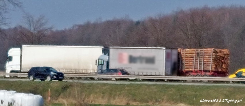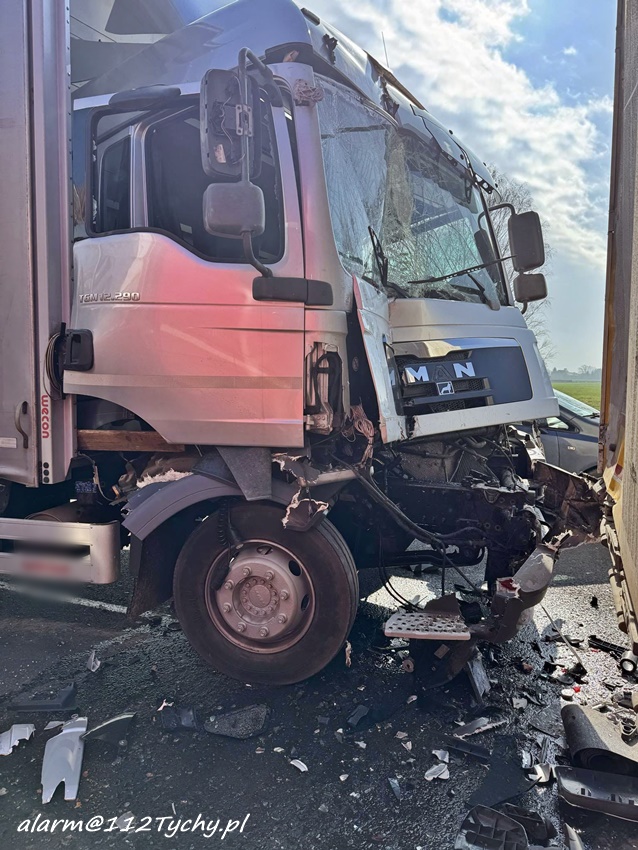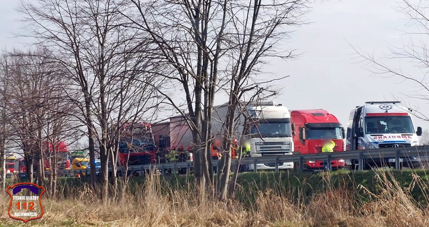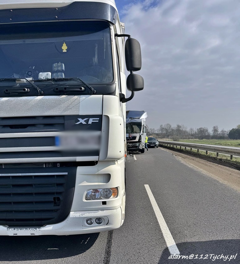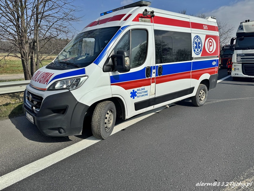 14 marca około godziny 10:40 na trasie S1 przed zjazdem na trasę DK1 w kierunku Pszczyny doszło do dwóch zdarzeń drogowych, w których udział brały trzy samochody ciężarowe. Na miejsce zdarzenia wezwane zostały: ZRM, zastępy strażaków JRG Tychy oraz Policja. Przed przybyciem wezwanych na miejsce służb ratunkowych w miejscu zdarzenia zatrzymał się wracający do bazy ZRM Bielskiego Pogotowia Ratunkowego, który pospieszył z pomocą poszkodowanym. Na czas działań ruch został zablokowany. Na szczęście w wyniku tych zdarzeń nikt poważnie nie ucierpiał. Ze wstępnych ustaleń pracujących na miejscu Policjantów wynika, że do pierwszego zdarzenia doszło w chwili gdy kierowca ciężarowego Man – a zagapił się i uderzył w naczepę jadącego przed nim Daf – a. Chwilę później w przyczepę Man – a i bariery energochłonne uderzyło Volvo z przyczepą. Po około godzinie ruch został puszczony lewym pasem. Utrudnienia trwały kilka godzin. Policjanci KMP Tychy prowadzą dalsze czynności w sprawie tych zdarzeń.