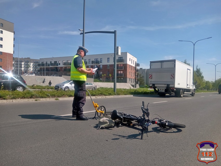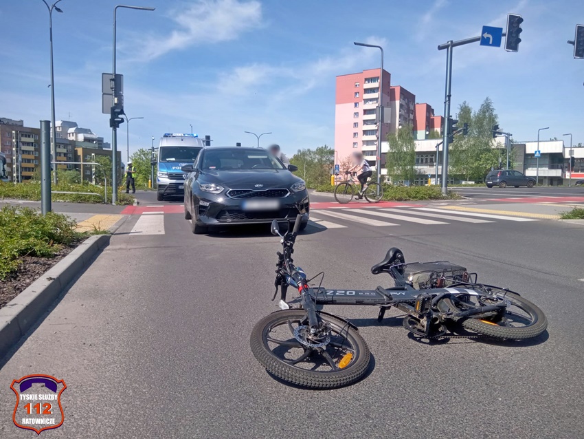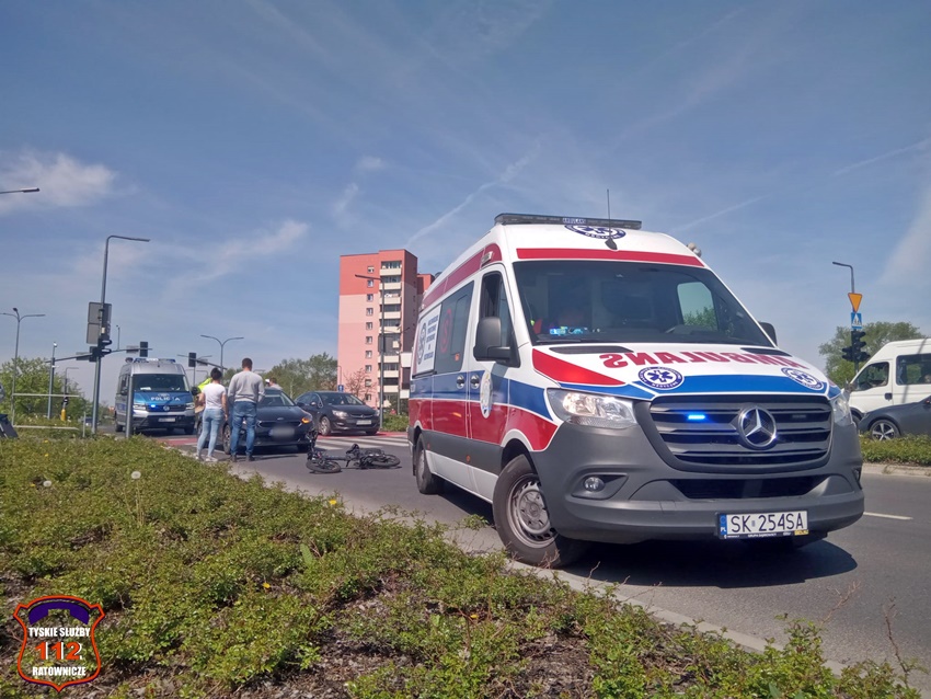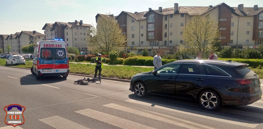 12 kwietnia przed godizną 13 na oznakowanym pzrejściu dla pieszych z wyznaczoną ścieżką rowerową na ul. Sikorskiego przy skrzyżowaniu z al. Bielską doszło do potrącenia rowerzysty przez kierującą samochodem osobowym marki KIA. Na miejsce zdarzenia wezwany został ZRM oraz patrol Policji. Przed przybyciem służb ratowników na miejsce z pomocą rowerzyście pospieszyli świadkowie zdarzenia. Mężczyzna z obrażeniami ciała trafił pod opiekę ratowników medycznych, a następnie został przewieziony do szpitala na dokładną diagnostykę. Ze wstępnych ustaleń pracujących na miejscu Policjantów wynika, że kierująca Kią kobieta wykonując manewr skrętu w prawo z al. Bielskiej w ul. Sikorskiego nie ustąpiła pierwszeństwa rowerzyście doprowadzając do zdarzenia. Działania na miejsce trwały około godziny. Policjanci KMP Tychy prowadzą dalsze postępowanie w tej sprawie.
