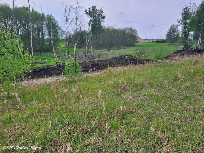 14 kwietnia około godziny 13:55 dyżurny SK KM PSP Tychy otrzymał zgłoszenie o pożarze traw i nieużytków w rejonie ul. Folwarcznej (przy Potoku Goławieckim). Na miejsce zgłoszenia zadysponowane zostały zastępy strażaków OSP Lędziny, OSP Chełm Śląski oraz JRG Tychy. Po przybyciu na miejsce zgłoszenie zostało potwierdzone. Pożar obejmował trawy i nieużytki w kilku miejscach. Strażacy podali prądy wody w natarciu na źródła pożaru. Dodatkowo na miejscu działał patrol bieruńskiej Policji.