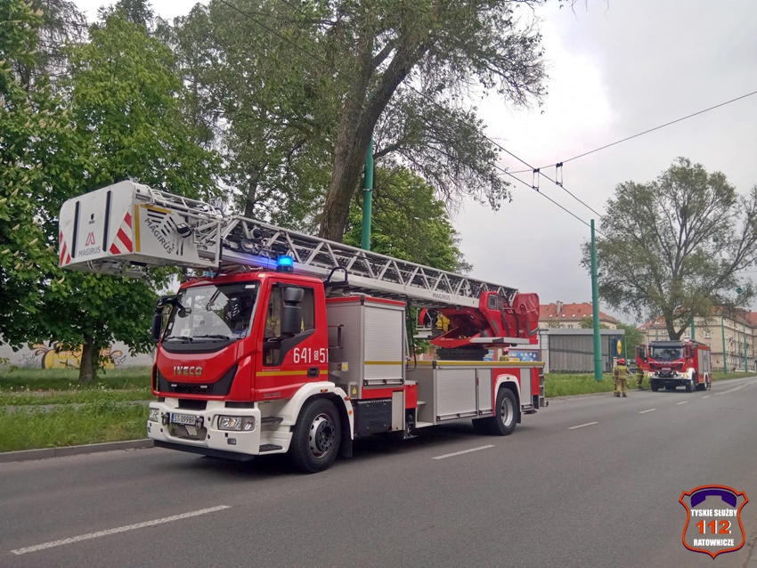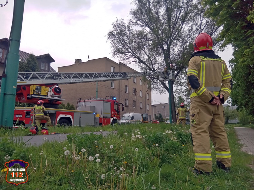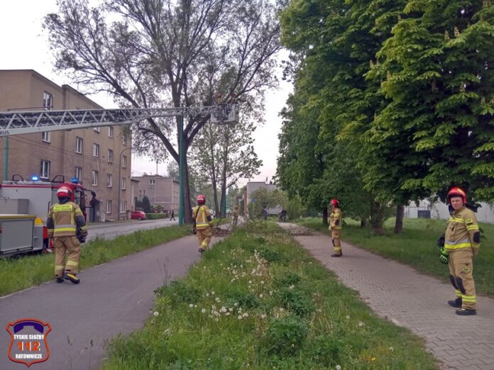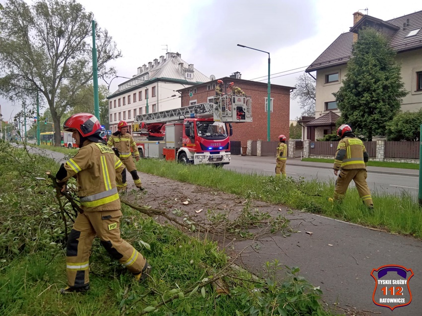 24 kwietnia około godziny 13:30 dyżurny SK KM PSP Tychy otrzymał zgłoszenie od funkcjonariuszy Straży Miejskiej o niebezpiecznie zwisających gałęziach nad ścieżką rowerową w ciągu ul. Budowlanych w rejonie Sanepid-u. Na miejsce zadysponowane zostały dwa zastępy strażaków JRG Tychy. Po przybyciu na miejsce i sprawieniu drabiny mechanicznej strażacy przy użyciu pilarek łańcuchowych usunęli zagrożenie. W trakcie działań wprowadzony został ruch wahadłowy. Po około czterdziestu minutach działania zostały zakończone.