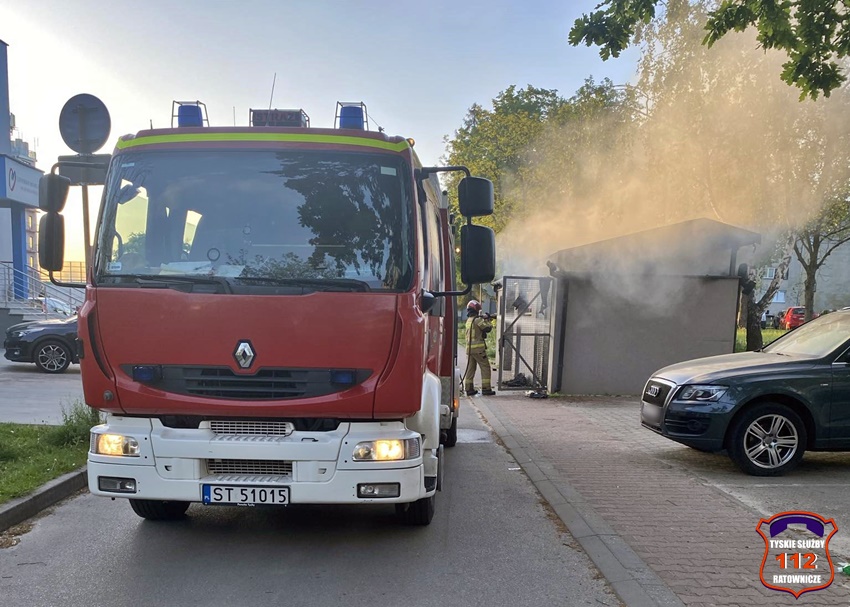 1 maja około godziny 5:45 dyżurny SK KM PSP Tychy otrzymał zgsżłoenei o pożarze altany śmietnikowej na ul. Grunwaldzkiej. Na miejsce zgłoszenia zadysponowany został zastęp strażaków JRG Tychy. Po przybyciu na miejsce strażacy podali jeden prąd wody w natarciu na palący się pojemnik z odpadami. Po około trzydziestu minutach działania zostały zakończone.