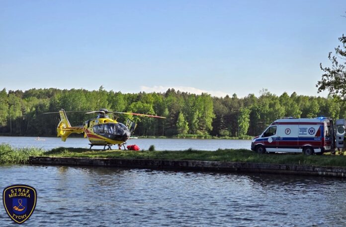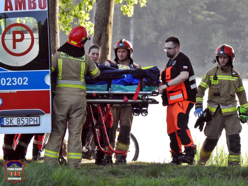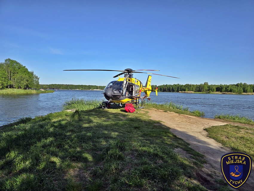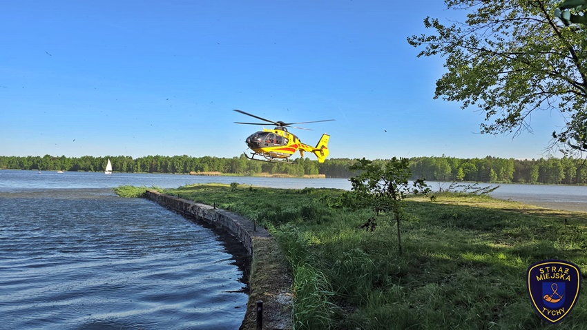 4 maja około godziny 16:50 dyżurny SK KM PSP Tychy otrzymał zgłoszenie z prośbą o zabezpieczenie lądowiska dla załogi śmigłowca LPR – Ratownik 4 na Dzikiej Plaży OW Paprocany. Latająca karetka została wezwana przez ratowników z naziemnego ZRM celem szybkiego transportu 27 – letniego mężczyzny (obywatel Ukrainy), który doznał urazu kręgosłupa skacząc do wody. Na miejsce zadysponowany został zastęp strażaków JRG Tychy oraz patrole Policji i Straży Miejskiej. Do działań włączyli się również ratownicy WOPR Tychy. Po zaopatrzeniu mężczyzna drogą lotniczą został przetransportowany do szpitala w Sosnowcu. Działania na miejscu zdarzenia trwały około godziny. Policjanci KMP Tychy prowadzą dalsze postępowanie w tej sprawie.
