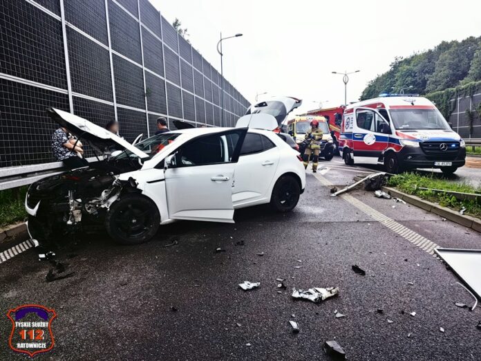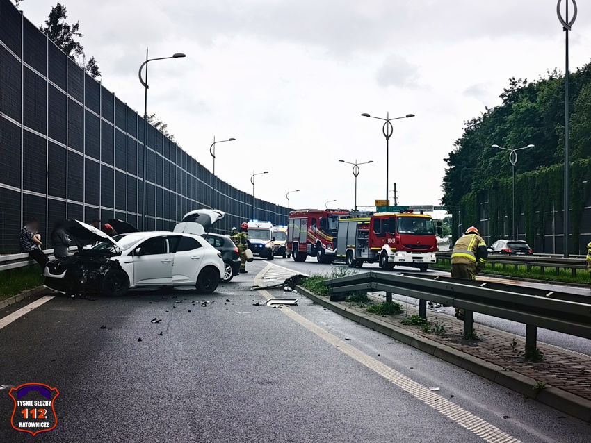 2 czerwca około godziny 13:40 dyżurny SK KM PSP Tychy otrzymał zgłoszenie o zdarzeniu drogowym, w którym miały brać udział trzy pojazdy w rejonie skrzyżowania ul. Beskidzkiej (DK1) z ul. Frycza – Modrzewskiego w kierunku Katowic. Ze zgłoszenia wynikało, że w zdarzeniu brały udział: VW Bora, Renault Megane oraz BMW serii 1. Na miejsce zgłoszenia zadysponowane zostały zastępy strażaków JRG Tychy, OSP Lędziny (z zabezpieczenia rejonu operacyjnego KM PSP Tychy), ZRM oraz Policja. Na czas działań ruch w kierunku Katowic był zablokowany. Po przybyciu na miejsce zgłoszenie zostało potwierdzone. Na szczęście w jego wyniku nikt nie ucierpiał. Z ustaleń pracujących na miejscu Policjantów wynika, że doszło do kolizji Renault i BMW, a sprawcą został uznany kierowca BMW. Jak się okazało VW nie brał udziału w zdarzeniu. Uszkodzone pojazdy zostały usunięte na pas zjazdowy, a ruch w kierunku Katowic przywrócony. Uszkodzone pojazdy zostały odholowane przez pomoc drogową. Policjanci KMP Tychy prowadzą dalsze postępowanie w sprawie tego zdarzenia.