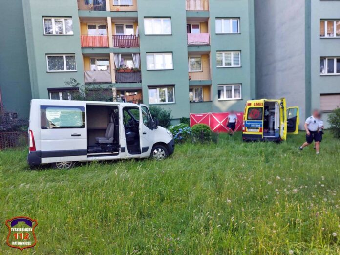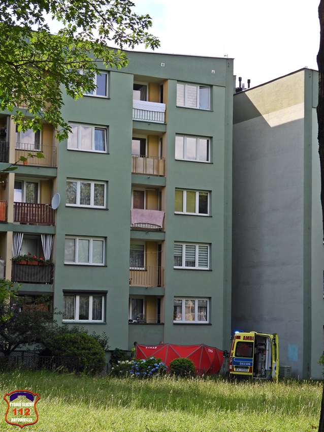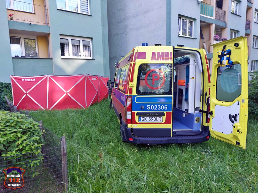 18 czerwca po godzinie 16 dyżurny SK KM PSP Tychy otrzymał zgłoszenie o upadku z wysokości w budynku wielorodzinnym przy ul. Ch. de Gaulle’a 27. Ze zgłoszenia wynikało, że pod oknami budynku leży młoda kobieta (ok. 23 lata), której obrażenia wskazują na upadek ze znacznej wysokości. Na miejsce zadysponowany został ZRM, Policja oraz zastęp strażaków JRG Tychy. Po przybyciu na miejsce ratownicy przystąpili do reanimacji, a strażacy rozstawili parawan ochronny, który zapewniał swobodę działań ratowników medycznych. Pracujący na miejscu Policjanci ustalili wstępnie, że młoda kobieta wypadła z balkonu na czwartym piętrze budynku. Niestety pomimo wysiłku ratowników nie udało się przywrócić funkcji życiowych młodej kobiety. Na miejsce zdarzenia wezwana została policyjna grupa dochodzeniowo – śledcza oraz prokurator. Niestety nie wyklucza się, że było to samobójstwo. Policjanci KMP Tychy pod nadzorem prokuratury wyjaśniają przyczyny i okoliczności tej tragedii. Rodzinie i bliskim składamy Najszersze kondolencje.