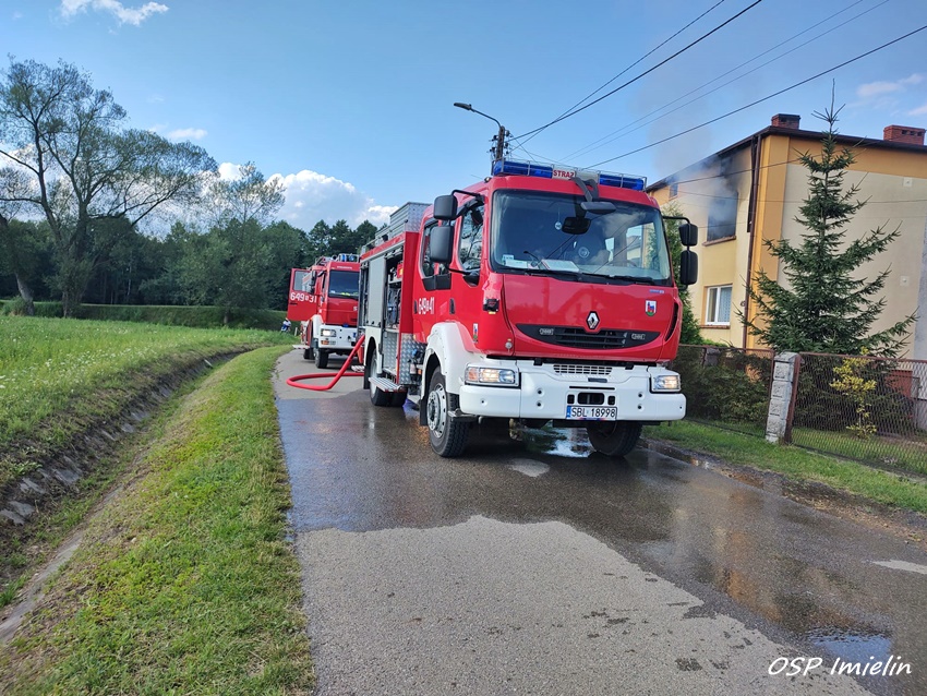 13 lipca około godziny 17 dyżurny SK KM PSP Tychy otrzymał zgłoszenie o pożarze domu przy ul. Kordeckiego w Imielinie. Na miejsce zgłoszenia zadysponowane zostały zastępy strażaków OSP Imielin, OSP Lędziny oraz JRG Tychy. Dodatkowo na miejsce zadysponowane zostały patrole Policji oraz ZRM. W trakcie działań ruch na ul. Kordeckiego był całkowicie zablokowany. W wyniku pożaru poszkodowana została jedna osoba, która została przekazana pod opiekę ratowników medycznych. Pożarem objęty był pokój na piętrze domu jednorodzinnego, który wraz z wyposażeniem spłonął doszczętnie. Po ugaszeniu pożaru strażacy wynieśli z pomieszczenia nadpalone elementy wyposażenie i je dodatkowo przelali. Działania na miejscu trwały ponad godzinę. Trwa ustalanie przyczyn i okoliczności powstania pożaru.