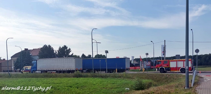 19 lipca około godziny 10 na ul. Oświęcimskiej w rejonie skrzyżowania z ul. Imbirową doszło do zdarzenia drogowego z udziałem kierującego skuterem marki Piaggio. Kierujący jednośladem wyprzedzał ciąg pojazdów i chcąc uniknąć czołowego zderzenia z jadącym z naprzeciwko ciągnikiem siodłowym uderzył w wysepkę rozdzielającą pasy ruchu. Po uderzeniu w wysepkę kierujący utracił panowanie nad jednośladem i przewrócił się. Na miejsce zdarzenia wezwane zostały: ZRM, zastęp strażaków JRG Tychy oraz Policja. W trakcie działań w miejscu zdarzenia wprowadzony został ruch wahadłowy kierowany przez funkcjonariuszy PSP Tychy oraz WRD KMP Tychy. Kierujący skuterem mężczyzna (52 lata) z obrażeniami ciała został przewieziony do szpitala. Policjanci KMP Tychy prowadzą postępowanie w tej spawie.