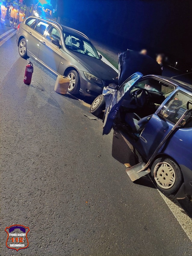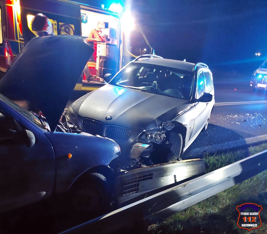 9 sierpnia około godziny 22:40 na ul. Mikołowskiej w rejonie zamkniętej myjni bezdotykowej doszło do czołowego zderzenia dwóch samochodów osobowych. W zdarzeniu brały udział BMW oraz Fiat. Na miejsce zdarzenia zadysponowane zostały: ZRM, zastępy strażaków JRG Tychy oraz Policji. W trakcie działań droga była całkowicie zablokowana. Osoby podróżujące pojazdami trafiły pod opiekę ratowników medycznych. Na szczęście nie było konieczności hospitalizacji. Ze wstępnych ustaleń pracujących na miejscu Policjantów wynika, że kierowca BMW z niewyjaśnionych przyczyn zjechał na przeciwległy pas i zderzył się czołowo z Fiatem. Działania służb na miejscu trwały około dwóch godzin. Policjanci KMP Tychy prowadzą dalsze postępowanie w tej sprawie.