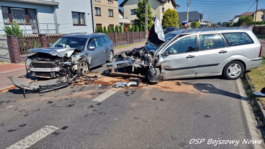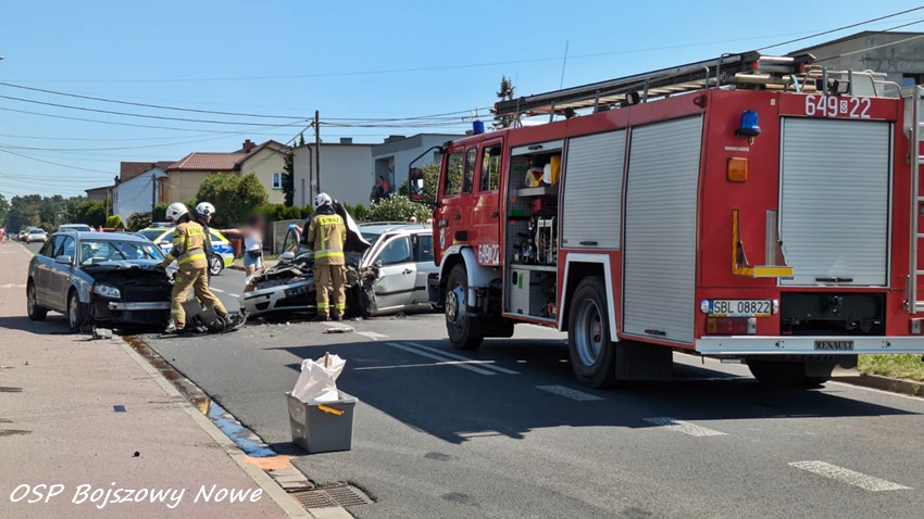 14 sierpnia około godziny 14 na ul. Ruchu Oporu w Bojszowach Nowych doszło do czołowo – bocznego zderzenia dwóch samochodów osobowych. W zdarzeniu brały udział Ford i Audi. Na miejsce zdarzenia zadysponowane zostały: ZRM, zastępy strażaków OSP Bojszowy Nowe, JRG Tychy oraz Policja. Na czas działań ruch był zablokowany. Osoby podróżujące pojazdami trafiły pod opiekę ratowników medycznych. Ze wstępnych ustaleń pracujących na miejscu Policjantów wynika, że sprawcą zdarzeni jest kierowca Forda, który z niewyjaśnianych przyczyn zjechał na przeciwległy pas i zderzył się czołowo z Audi. Utrudnienia w ruchu trwały blisko dwie godziny. Policjanci KPP Bieruń prowadzą dalsze postępowanie w tej sprawie.