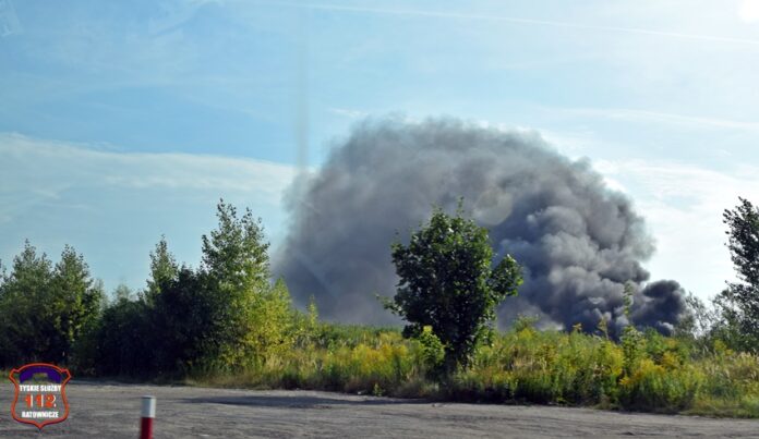 15 sierpnia o godzinie 8:54 dyżurny SK KM PSP Tychy otrzymał zgłoszenie o pożarze składu makulatury przy ul. Zwierzynieckiej. Na miejsce natychmiast zadysponowane zostały zastępy JRG Tychy oraz Straż Miejska i Policja. W trakcie dojazdu widoczne były już kłęby czarnego dymu unoszące się nad składowiskiem. Kierujący działaniem ratowniczym drogą radiową poprosił o zadysponowanie dodatkowych sił i środków na miejsce pożaru. Do działań zadysponowane zostały zastępy strażaków OSP Bieruń Stary, OSP Bieruń Nowy, OSP Chełm Śląski, OSP Bojszowy Nowe, OSP Imielin oraz strażacy z Katowic, Chorzowa i Świętochłowic. W trakcie działań gaśniczych na składowisku dodatkowo doszło do pożaru altany na pobliskich ogródkach działkowych (ten pożar został szybko ugaszony). Do pożaru składowiska zadysponowane zostały grupy operacyjne KW PSP Katowice oraz KM PSP Tychy. Równoległe z działaniami gaśniczymi, pracownicy składowiska usuwali pojazdy ciężarowe z placu firmy, a przy użyciu ładowarek rozgarniali palące się składowisko celem ułatwienia działań gaśniczych. Pożarem objęta była powierzchnia 50x 15 m, czyli 750m2. Po godzinie 10 pożar został opanowany. Działania na miejscu potrwają do godzin wieczornych. Na miejsce pracują również przedstawiciele Wojewódzkiego Inspektoratu Ochrony Środowiska.