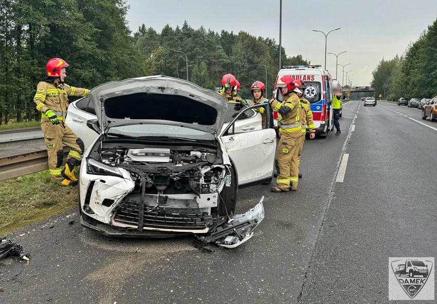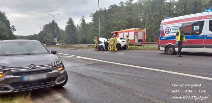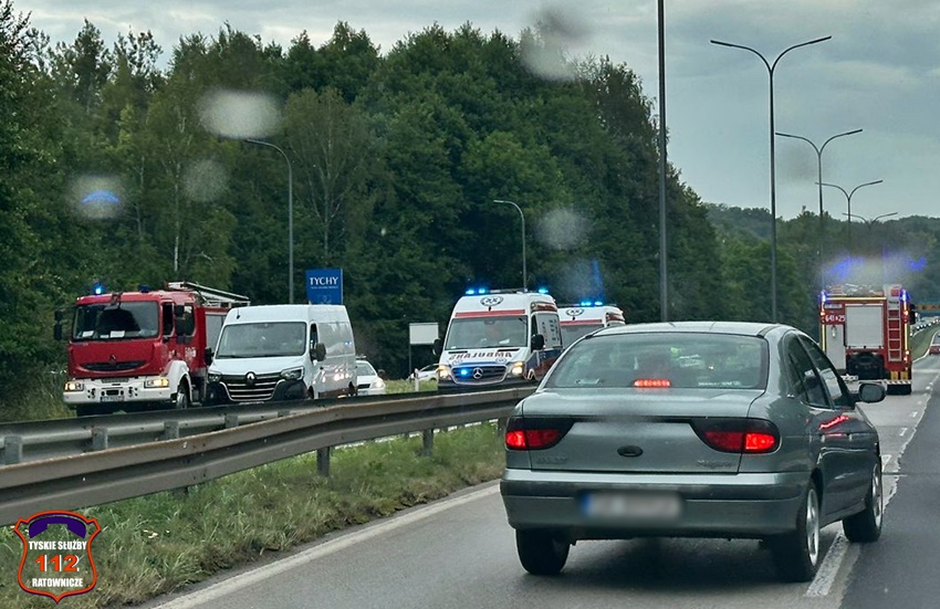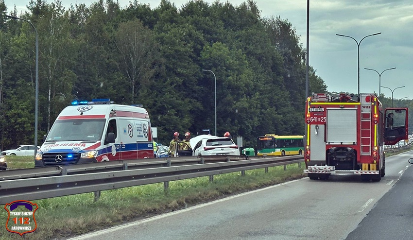 17 sierpnia po godzinie 11 dyżurny SK KM PSP Tychy otrzymał zgłoszenie o zdarzeniu drogowym na ul. Beskidzkiej (DK 86) w rejonie wyjazdu z ul. Boya – Żeleńskiego na pasie w kierunku Pszczyny. Na miejsce zgłoszenia natychmiast zadysponowane zostały zastępy strażaków JRG Tychy, ZRM oraz Policja z Katowic i Tychów. W trakcie działań ruch w kierunku Tychów został częściowo zablokowany. Osoby podróżujące osobowym Lexusem trafiły pod opiekę ratowników medycznych. Ze wstępnych ustaleń pracujących na miejscu Policjantów wynika, że w zdarzeniu brały udział dwa pojazdy. osobowy Lexus oraz ciągnik siodłowy z naczepą, którego kierowca nie zatrzymał się i odjechał z miejsca zdarzenia nie udzielając pomocy. Po kilkunastu minutach drugi uczestnik został ustalony i odnaleziony niedaleko miejsca zdarzenia. Utrudnienia w ruchu w miejscu zdarzenia trwały kilka godzin. Policjanci KMP Tychy prowadzą czynności mające na celu ustalenie drugiego uczestnika zdarzenia oraz dokładny przebieg i okoliczności.