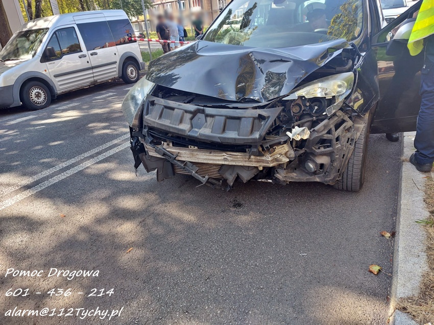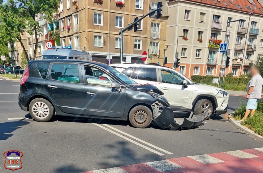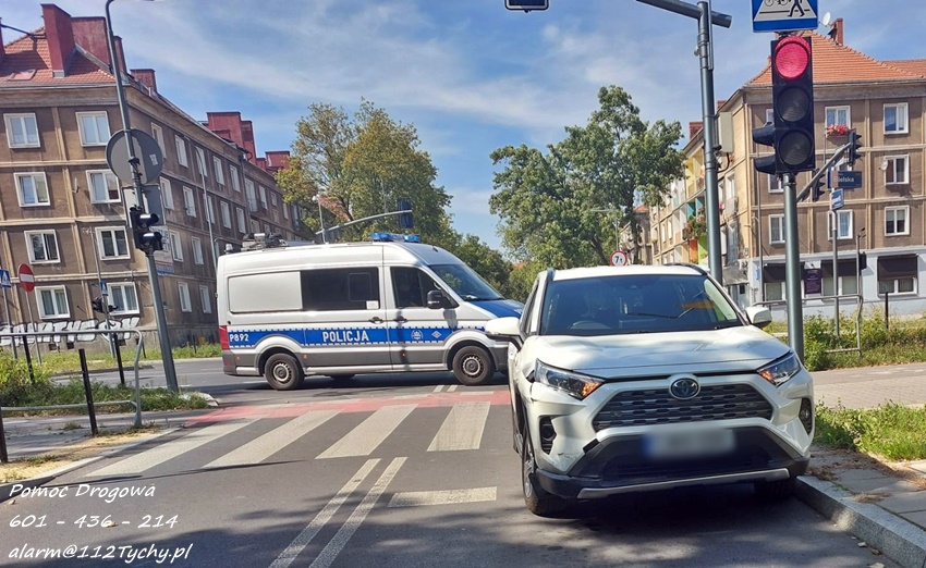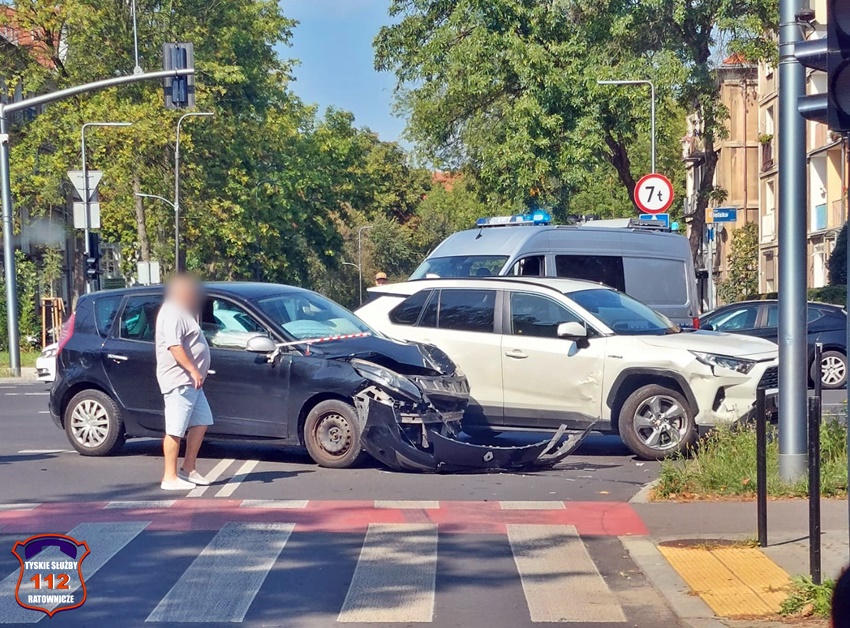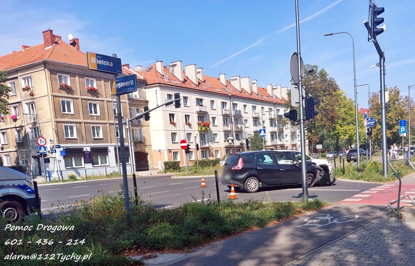 29 sierpnia około godziny 11 na skrzyżowaniu ul. Czarnieckiego – al. Bielska – ul. Cyganerii doszło do czołowo – bocznego zderzenia dwóch pojazdów. W zdarzeniu brały udział samochody marki Toyota oraz Renault. Z pomocą uczestnikom pospieszyli świadkowie zdarzenia, a wśród nich policjant Wydziału do Walki z Przestępczością Przeciwko Mieniu oraz dzielnicowy, który dodatkowo zabezpieczył miejsce zdarzenia. Policjanci o zdarzeniu poinformowali dyżurnego KMP Tychy. Na miejsce zdarzenia zadysponowany został ZRM oraz patrol drogówki. Z ustaleń pracujących na miejscu Policjantów wynika, że sprawcą zdarzenia jest kierowca Toyoty, który wykonując manewr skrętu w lewo z al. Bielskiej w ul. Cyganerii nie zachował ostrożności i wymusił pierwszeństwo na jadącym w kierunku KMP Tychy kierowcy Renault. W wyniku zdarzenia poszkodowana została pasażerka Renault oraz kierowca Toyoty. Pasażerka Renault (63lata) po zaopatrzeniu na miejscu została przewieziona do szpitala na dokładne badania. Na szczęście nie wykazały one obrażeń, które skutkowałyby hospitalizacją. Działania na miejscu trwały blisko trzy godziny. Kierowca Toyoty został ukarany mandatem karnym.