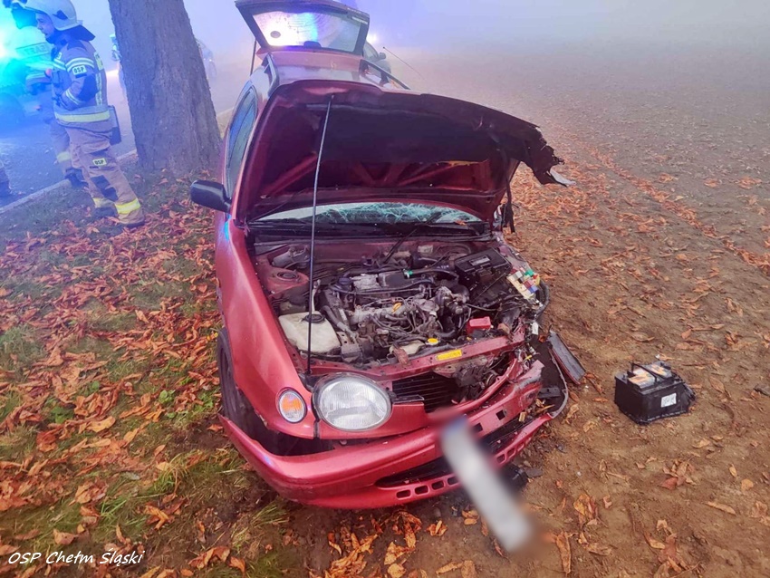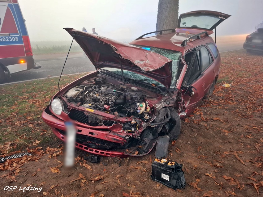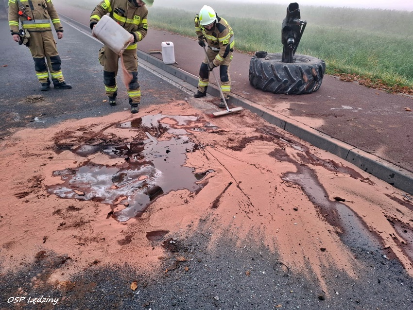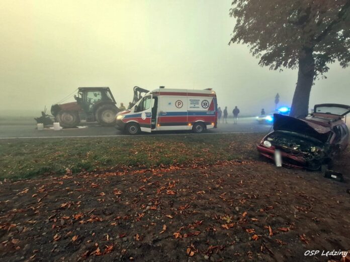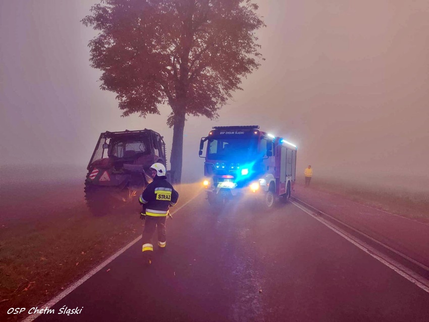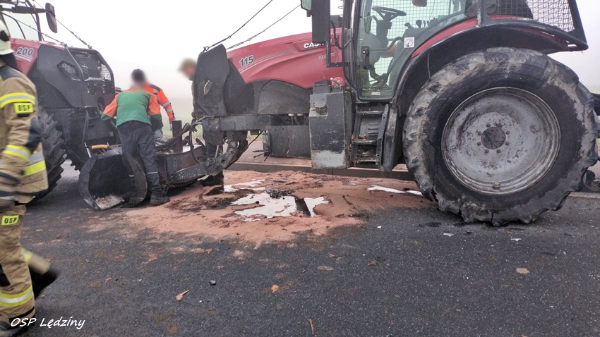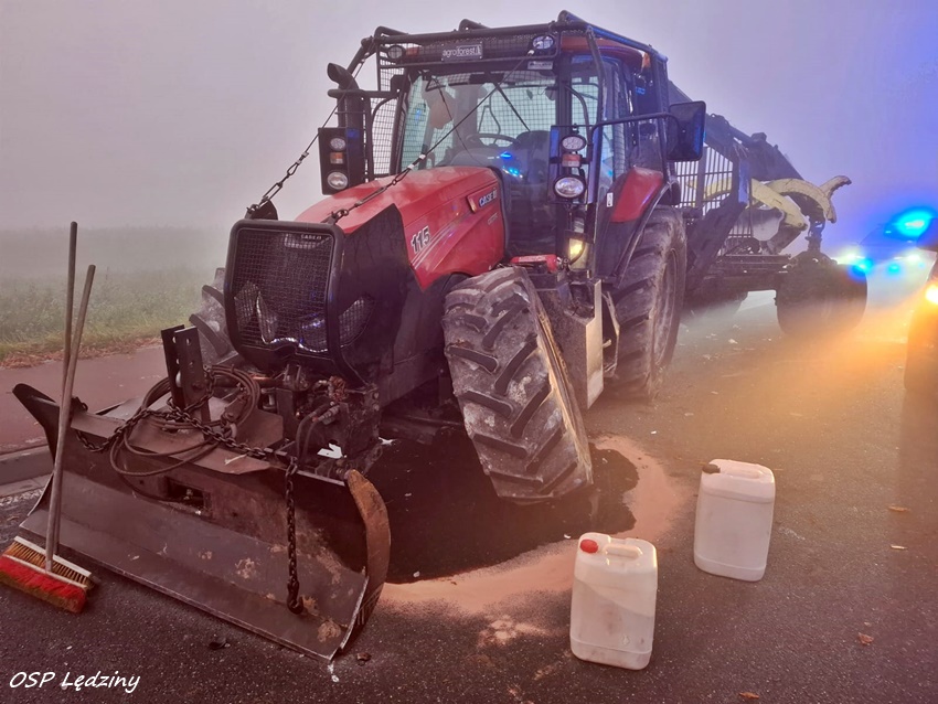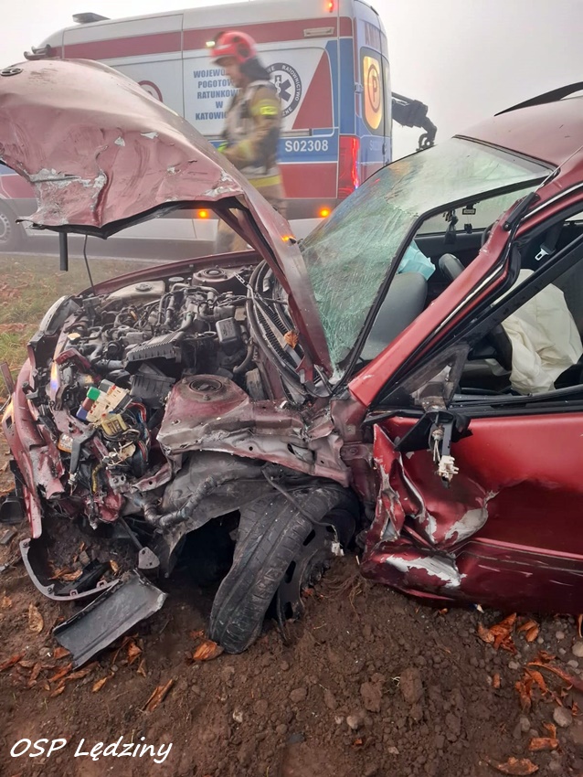 24 października około godziny 6:40 dyżurny SK KM PSP Tychy otrzymał zgłoszenie o czołowym zderzeniu samochodu osobowego i traktora na ul. Goławieckiej w Lędzinach. Na miejsce zdarzenia zadysponowane zostały zastępy strażaków OSP Lędziny, OSP Chełm Śląski, JRG Tychy oraz ratownicy medyczni i Policja. W trakcie działań ruch był całkowicie wstrzymany. Kierowcy obu pojazdów trafili pod opiekę ratowników medycznych. Ze wstępnych ustaleń pracujących na miejscu Policjantów jak i relacji świadków zdarzenia wynika, że kierowca osobowej Toyoty podjął manewr wyprzedzania innego samochodu osobowego w gęstej mgle. W trakcie manewru z naprzeciwka wyłonił się traktor. Tylko dzięki szybkiej reakcji kierującej wyprzedzanym pojazdem, która zjechała na pobocze nie doszło do tragedii. Jednakże kierowca Toyoty nie miał już miejsca na ucieczkę i uderzył w traktor. Działania na miejscu trwały blisko dwie godziny.