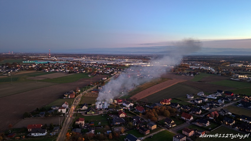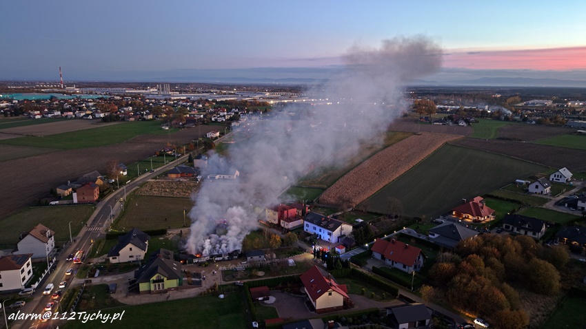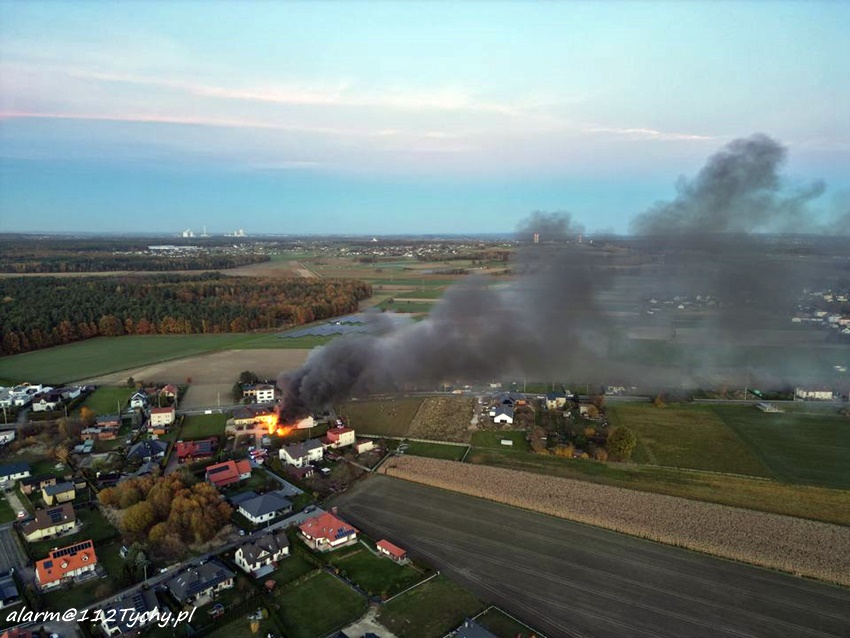 2 listopada około godziny 16:10 dyżurny SK KM PSP Tychy otrzymał zgłoszenie o pożarze garaży blaszanych na terenie jednej z posesji u zbiegu ul. Jaroszowicka – Krzywa. Na miejsce zgłoszenia zadysponowane zostały zastępy strażaków JRG Tychy, OSP Bieruń Stary, OSP Bieruń Nowy oraz OSP Lędziny. Po przybyciu na miejsce strażacy w aparatach ochrony układu oddechowego przystąpili do działań. Sytuacja została szybko opanowana. Po ugaszeniu ognia pogorzelisko zostało przeszukane i sprawdzone przy użyciu kamery termowizyjnej. dzięki szybkiej reakcji udało się uratować budynek mieszkalny. Trwa ustalanie przyczyn i okoliczności powstania pożaru.