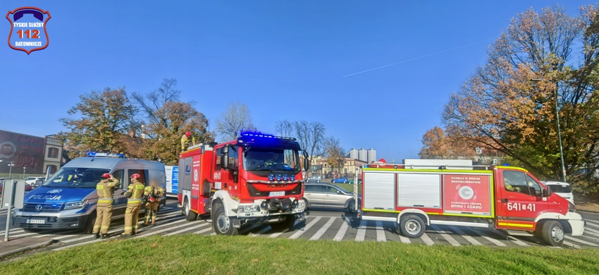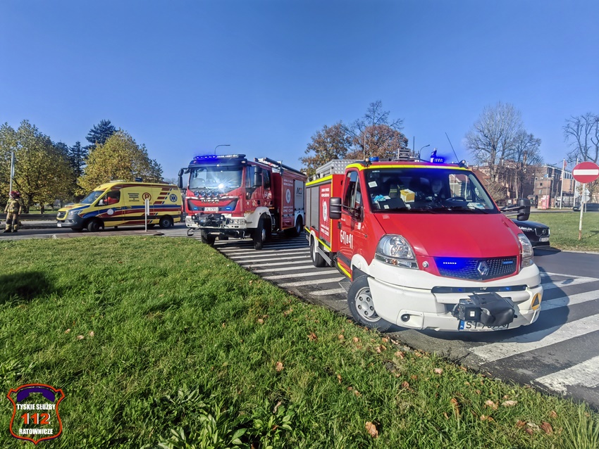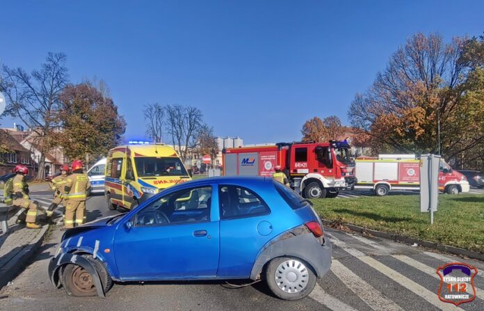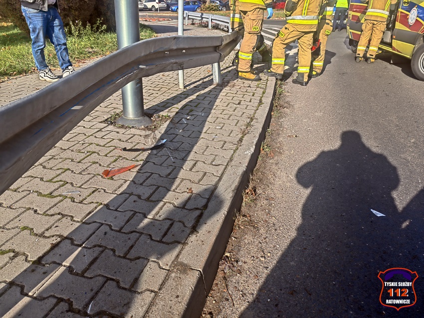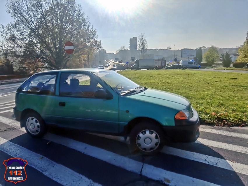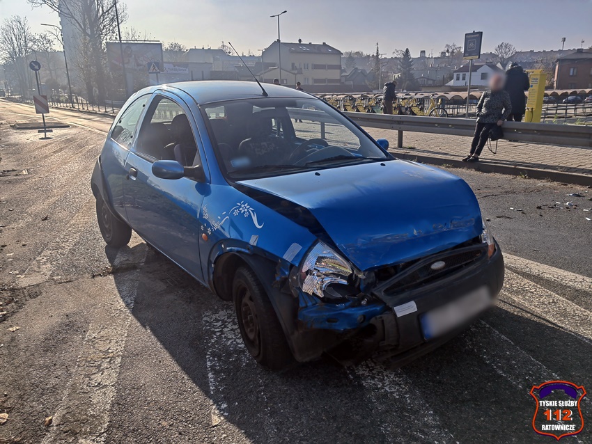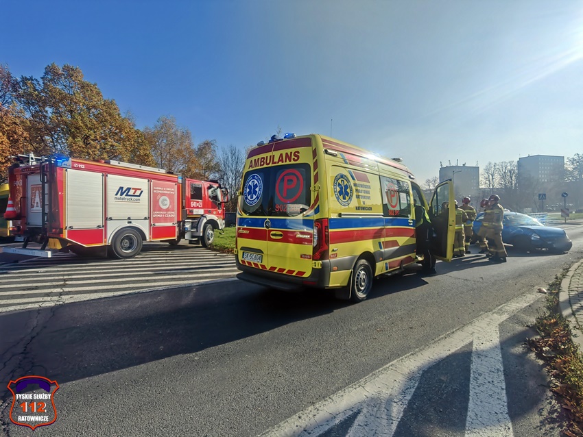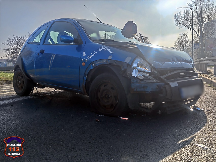 5 listopada około godziny 11:55 w rejonie skrzyżowania ul. Katowicka – Kościuszki w kierunku al. Bielskiej doszło do groźnie wyglądającego zdarzenia drogowego. W zdarzeniu brały udział dwa pojazdy: Suzuki oraz Ford. W wyniku zderzenia pojazdów kierowca Forda utracił panowanie nad swoim pojazdem i uderzył w metalowe bariery energiochłonne. Na miejsce zdarzenia zadysponowane zostały: ZRM, zastępy strażaków JRG Tychy oraz Policja. W trakcie działań ruch w miejscu zdarzenia był całkowicie zablokowany, a objazd został wyznaczony ul. Kościuszki. W wyniku zdarzenia poszkodowany został kierowca Forda, który po zaopatrzeniu na miejscu został przewieziony do szpitala na dokładną diagnostykę. Na szczęście okazało się, że nie doznał on poważnych obrażeń i nie było konieczności hospitalizacji. Z ustaleń pracujących na miejscu Policjantów wynika, że kierujaca Suzuki kobieta włączając się do ruchu z ul. Kościuszki w ul. Katowicką nie zachowała należytej ostrożności i uderzyła w jadącego w kierunku al. Bielskiej Forda. Po wykonaniu wstępnych czynności przez pracujących na miejscu Policjantów uszkodzony Ford został usunięty z drogi, a ruch został przywrócony. Kierująca Suzuki została uznana winną spowodowania zdarzenia i ukarano ją mandatem karnym.