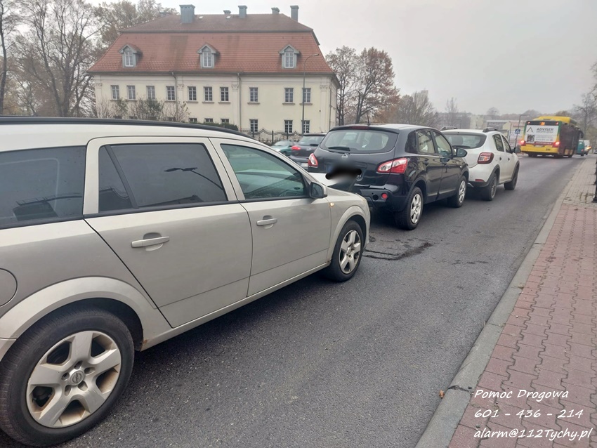 12 listopada około godziny 9:30 na ul. Katowickiej przed skrzyżowaniem z ul. Kościuszki doszło do zdarzenia drogowego z udziałem trzech samochodów osobowych. W zdarzeniu brały udział pojazdy: Opel, Nissan oraz Dacia. Uczestnicy zdarzenia wezwali na miejsce patrol Policji. W wyniku kolizji nikt nie ucierpiał. Z ustaleń pracujących na miejscu Policjantów wynika, że sprawczynią zdarzenia jest kierująca Oplem kobieta, która nie zachowała należytej ostrożności i uderzyła w tył poprzedzającego Nissana, a ten następnie w poprzedzająca Dacię. Na czas działań prawy pas w kierunku centrum został częściowo wyłączony z ruchu. Kierująca Oplem została ukarana mandatem karnym.