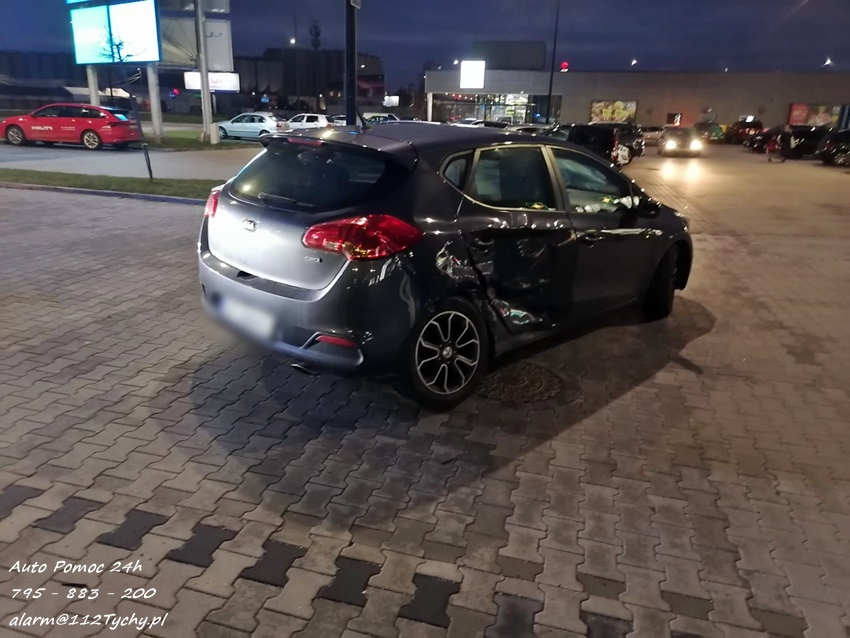 30 listopada około godziny 16 na parkingu Galerii Kwiatowej przy ul. Oświęcimskiej doszło do zdarzenia drogowego z udziałem dwóch samochodów osobowych,. W zdarzeniu brały udział pojazdy marki Opel oraz Kia. Na miejsce zdarzenia wezwany został ZRM oraz patrol Policji. Jedna z osób uczestniczących w zdarzeniu trafiła pod opiekę przybyłych na miejcie ratowników medycznych. Na szczęście osoba ta nie doznała poważnych obrażeń i po przebadaniu pozostała na miejscu zdarzenia. Z ustaleń pracujących na miejscu Policjantów wynika, że sprawcą zdarzenia jest kierowca samochodu marki Kia, który nie zachował należytej ostrożności i wjechał wprost przed maskę Opla. Uszkodzone pojazdy został odholowane przez pomoc drogową. Policjanci KMP Tychy prowadzą dalsze postępowanie w tej sprawie.