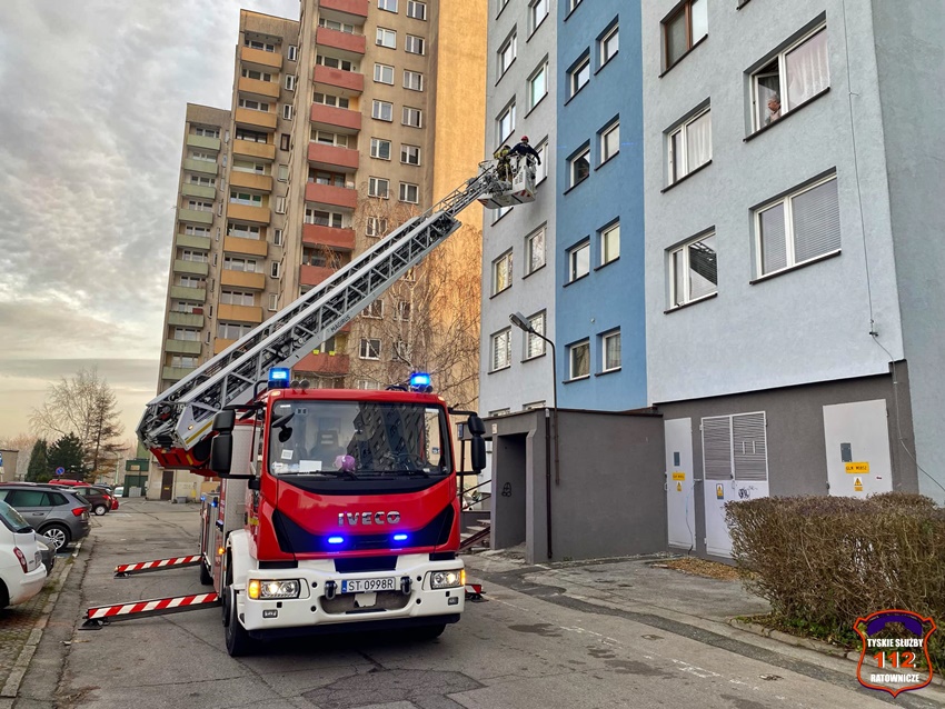 3 grudnia około godziny 7:45 dyżurni KMP Tychy oraz SK KM PSP Tychy otrzymali zgłoszenie, że w jednym z mieszkań w budynku wielorodzinnym przy ul. Nałkowskiej 11 znajduje się mężczyzna potrzebujący pilnej pomocy. Na miejsce zadysponowane zostały zastępy strażaków JRG Tychy, patrol Policji oraz ratownicy medyczni WPR Katowice. Po przybyciu na miejsce i sprawieniu drabiny mechanicznej ratownicy dostali się do mieszkania. Lokator trafił pod opiekę ratowników medycznych, a następnie został przetransportowany do szpitala.