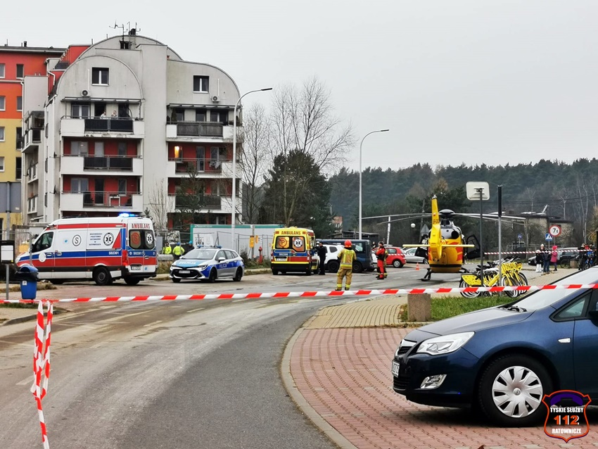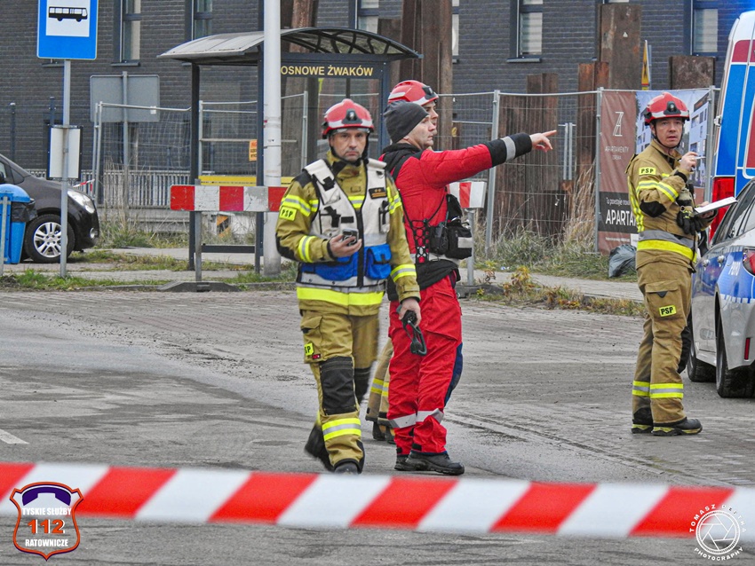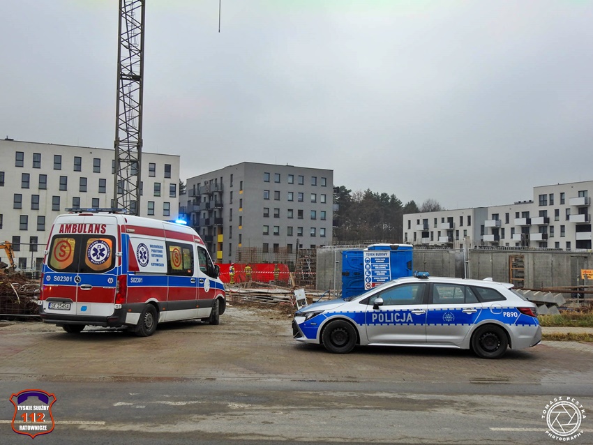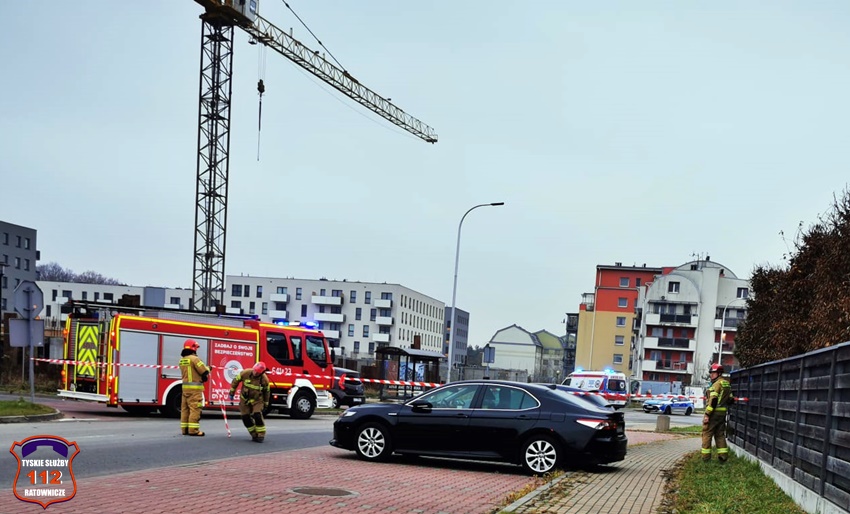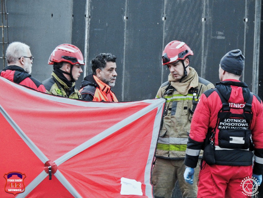 4 grudnia około godziny 12:45 dyżurni KMP Tychy oraz SK KM PSP Tychy otrzymali zgłoszenie o wypadku na terenie budowy przy ul. Żorskiej. Ze zgłoszenia wynikało, że jeden z pracowników został przygnieciony przez płytę szalunkową. Na miejsce zdarzenia natychmiast zadysponowane zostały zastępy strażaków JRG Tychy wraz z Komendantem Miejskim PSP Tychy, bryg. Wojciechem Rapką oraz zastępcą dowódcy JRG Tychy, asp. Szymonem Gniewkowskim, ratownicy medyczni WPR Katowice – stacja Tychy oraz LPR – Ratownik 4, a także funkcjonariusze tyskiej Policji i Straży Miejskiej. Na czas działań ratunkowych ruch na ul. Żorskiej został całkowicie zablokowany. Niestety pomimo wysiłku ratowników i lekarzy nie udało się uratować życia 37 – letniego mężczyzny. Ze wstępnych ustaleń pracujących na miejscu Policjantów wynika, że podczas prac z zawiesia dźwigu oderwała się przenoszona płyta szalunkowa, która spadła na mężczyznę. Pod opiekę ratowników medycznych trafił również operator dźwigu. Na miejsce wypadku wezwany został policyjny technik kryminalistyki, prokurator oraz przedstawiciele Państwowej Inspekcji Pracy. Rodzinie i bliskim składamy najszczersze kondolencje. Policjanci KMP Tychy pod nadzorem prokuratury prowadzą śledztwo w tej sprawie.