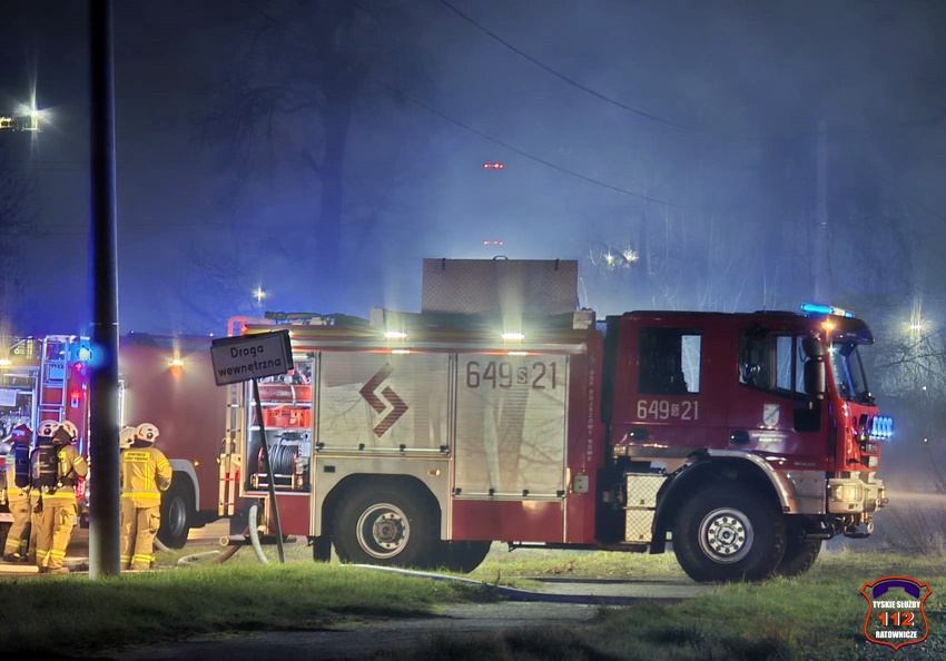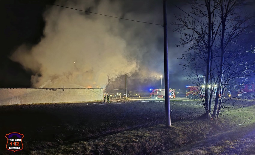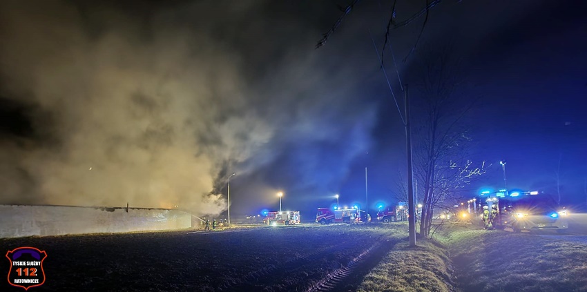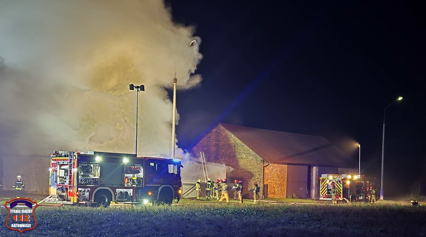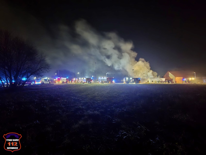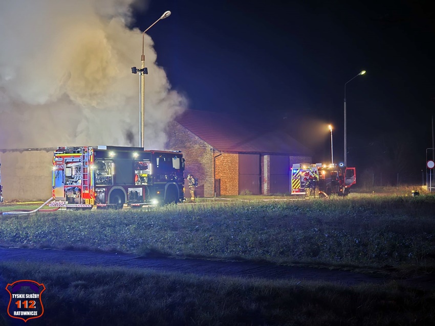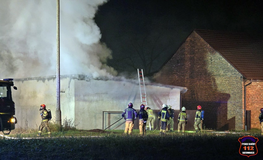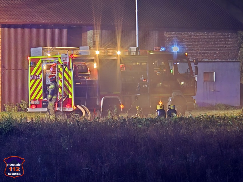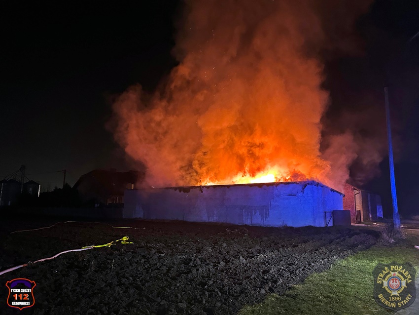 5 grudnia około godziny 16:40 dyżurny SK KM PSP Tychy otrzymał zgłoszenie o pożarze budynku gospodarczego na terenie gospodarstwa rolnego na os. Wygoda w Bieruniu. Na miejsce zgłoszenia natychmiast zadysponowane zostały zastępy strażaków OSP Bieruń Stary oraz JRG Tychy, a także patrol Policji. Po dojeździe pierwszych zastępów Kierujący Działaniem Ratowniczym zgłosił dyżurnemu, że pożar jest dość mocno rozwinięty i jest konieczność zadysponowania kolejnych zastępów. Do działań zadysponowane zostały zastępy OSP Lędziny, OSP Bojszowy Nowe oraz OSP Świerczyniec. W trakcie działań zabezpieczenie rejonu operacyjnego KM PSP Tychy pełniły zastępy OSP Bieruń Stary oraz OSP Bojszowy. Strażacy w aparatach ochrony układu oddechowego podali kilka prądów wody w natarciu na palący się dach budynku oraz prąd wody w obronie pobliskiego budynku mieszkalnego. Dodatkowo strażacy schładzali znalezione w budynku butle z acetylenem i tlenem. Dzięki ich zaangażowaniu budynek mieszkalny został uratowany. W budynku gospodarczym znajdowały się maszyny rolnicze, butle z gazem (wyniesione z budynku) oraz składowane były płody rolne. Niestety wszystko zostało doszczętnie zniszczone. Zaopatrzenie wodne zostało wykonane z pobliskiej sieci hydrantowej. Dodatkowo strażacy oświetlali teren działań. Po godzinie 23 działania gaśnicze na miejscu zostały zakończone. Na miejscu do godz.16:45, dn. 6 grudnia stacjonował zastęp strażaków JRG Tychy, który nadzorował chlodzenie butli z gazami technicznymi w specjalnym zbiorniku. Policjanci KPP Bieruń prowadzą dalsze czynności mające na celu wyjaśnienie przyczyn i okoliczności powstania pożaru.
