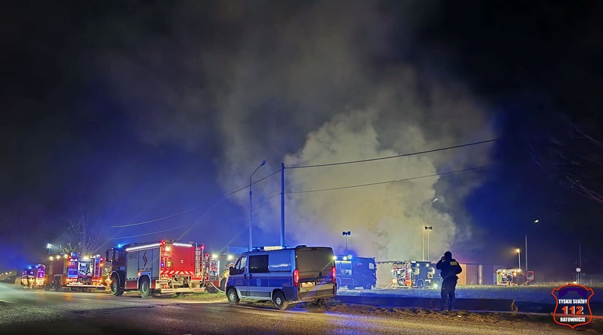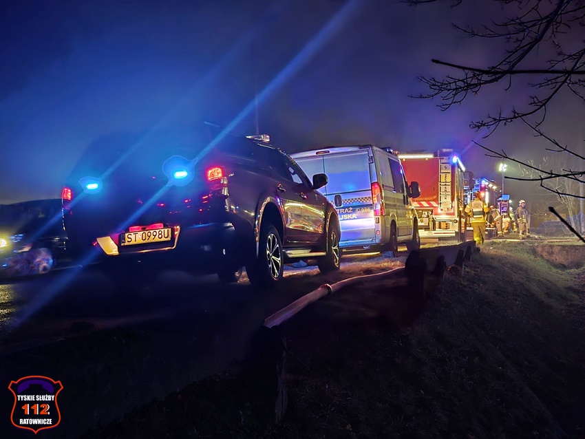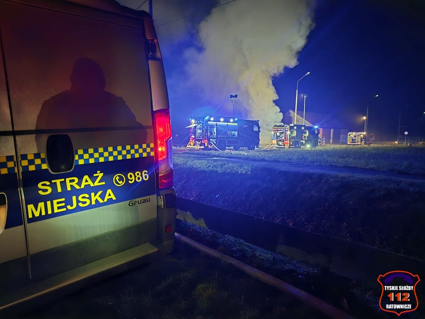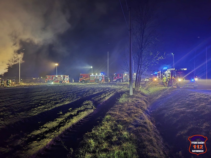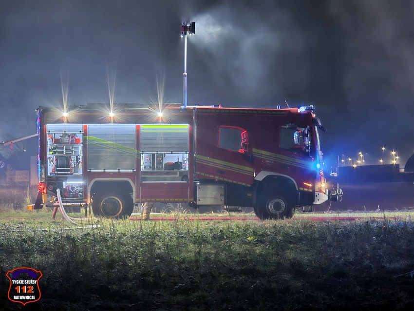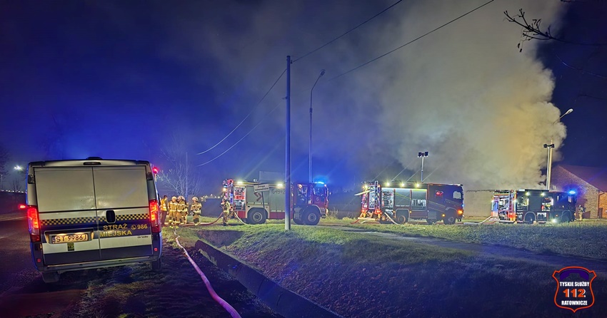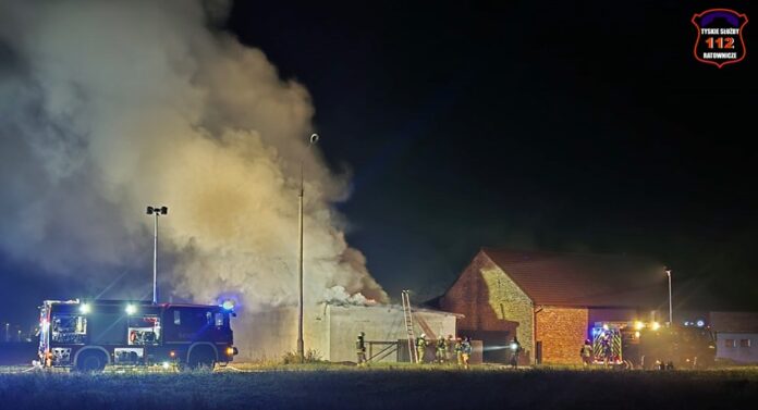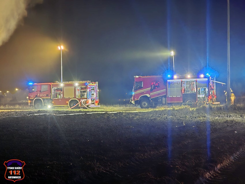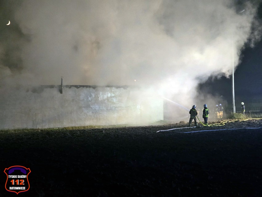 5 grudnia około godziny 16:40 dyżurny SK KM PSP Tychy otrzymał zgłoszenie o pożarze budynku gospodarczego na terenie gospodarstwa rolnego na os. Wygoda w Bieruniu. Na miejsce zgłoszenia natychmiast zadysponowane zostały zastępy strażaków OSP Bieruń Stary oraz JRG Tychy, a także patrol Policji. Po dojeździe pierwszych zastępów Kierujący Działaniem Ratowniczym zgłosił dyżurnemu, że pożar jest dość mocno rozwinięty i jest konieczność zadysponowania kolejnych zastępów. Do działań zadysponowane zostały zastępy OSP Lędziny, OSP Bojszowy Nowe oraz OSP Świerczyniec. W trakcie działań zabezpieczenie rejonu operacyjnego KM PSP Tychy pełniły zastępy OSP Bieruń Stary oraz OSP Bojszowy. Strażacy w aparatach ochrony układu oddechowego podali kilka prądów wody w natarciu na palący się dach budynku oraz prąd wody w obronie pobliskiego budynku mieszkalnego. Dodatkowo strażacy schładzali znalezione w budynku butle z acetylenem i tlenem. Dzięki ich zaangażowaniu budynek mieszkalny został uratowany. W budynku gospodarczym znajdowały się maszyny rolnicze, butle z gazem (wyniesione z budynku) oraz składowane były płody rolne. Niestety wszystko zostało doszczętnie zniszczone. Zaopatrzenie wodne zostało wykonane z pobliskiej sieci hydrantowej. Dodatkowo strażacy oświetlali teren działań. Po godzinie 23 działania gaśnicze na miejscu zostały zakończone. Na miejscu do godz.16:45, dn. 6 grudnia stacjonował zastęp strażaków JRG Tychy, który nadzorował chlodzenie butli z gazami technicznymi w specjalnym zbiorniku. Policjanci KPP Bieruń prowadzą dalsze czynności mające na celu wyjaśnienie przyczyn i okoliczności powstania pożaru.