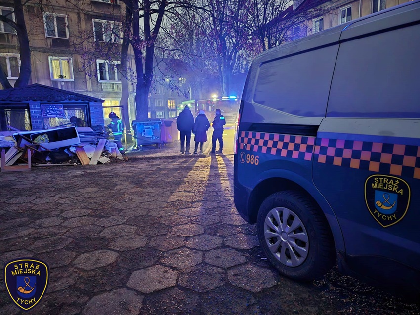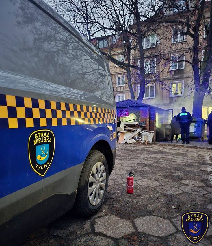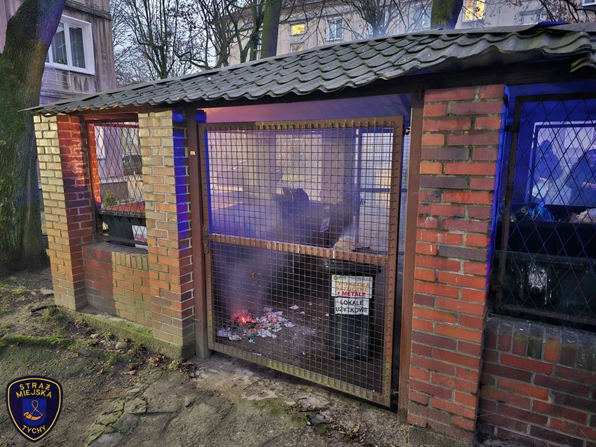 11 grudnia około godziny 16 patrol Straży Miejskiej został powiadomiony przez mieszkańca o pożarze śmieci w altanie przy ul. Cyganerii 24. Strażnicy natychmiast podjechali pod wskazany adres i potwierdzili zgłoszenie. O zaistniałej sytuacji powiadomili dyżurnego SM Tychy oraz dyżurnego SK KM PSP Tychy. Po zabezpieczeniu miejsca zdarzenia przy użyciu gaśnicy proszkowej będącej na wyposażeniu radiowozu strażnicy częściowo ugasili palące się śmieci. Przybyli na miejsce strażacy podali jeden prąd wody w natarciu na tlące się jeszcze śmieci. W wyniku pożaru uszkodzone zostały dwa pojemniki o pojemności 1100l oraz jeden o [pojemności 120l. Jak się okazało, pożar powstał w wyniku spalania starych dokumentów przez parę mieszkańców. Osoby te zostały wylegitymowane i poinformowane o grożących im konsekwencjach. Działania na miejscu trwały około czterdziestu minut.