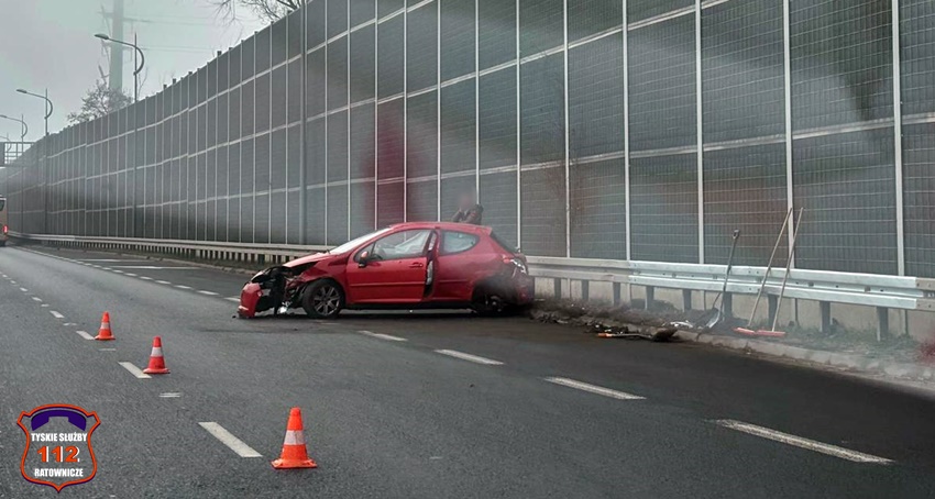 28 grudnia około godziny 12:50 na ul. Beskidzkiej w rejonie pasa rozbiegowego z ul. Oświęcimskiej w kierunku Pszczyny doszło do zdarzenia drogowego. Kierujący osobowym Peugeotem utracił panowanie nad swoim pojazdem i uderzył w bariery energiochłonne. Na miejsce zdarzenia zadysponowany został zastęp strażaków JRG Tychy oraz patrol drogówki KMP Tychy. W trakcie działań ruch odbywał się tylko jednym pasem. Kierowca osobówki wyszedł ze zdarzenia bez szwanku. Policjanci KMP Tychy ukarali kierowcę mandatem karnym.