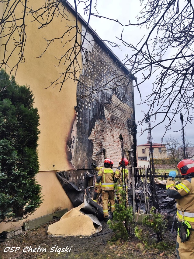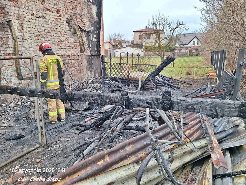 2 stycznia około godziny 11:25 dyżurny Stanowiska Kierowania Komendanta Miejskiego PSP w Tychach otrzymał zgłoszenie o pożarze budynku gospodarczego przyległego do budynku mieszkalnego w Imielinie przy ul. Piotra Skargi. Na miejsce natychmiast zadysponowane zostały zastępy strażaków OSP Imielin, OSP Chełm Śląski, JRG Tychy oraz Policja, pogotowie energetyczne i pogotowie gazowe. Po przybyciu na miejsce strażacy podali prądy wody celem ugaszenia pożaru. Przybudówka oraz pobliskie krzewy spłonęły doszczętnie, a elewacja budynku została dość mocno uszkodzona. Trwa ustalanie przyczyn i okoliczności powstania pożaru.