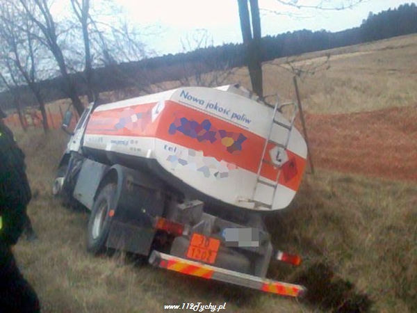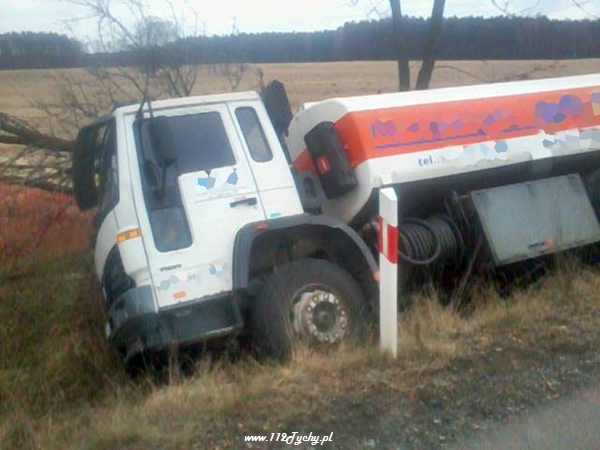 4 marca około godziny 12:10 do dyżurnego tyskiej Straży Pożarnej wpłynęło zgłoszenie o samochodzie cysternie w rowie na DK 1 w kierunku Tychów. Na miejsce zadysponowane zostały trzy zastępy strażaków – jeden z OSP Lędziny (GLBA) i dwa z JRG Tychy (GBA, SCRt). Po dotarciu na miejsce okazało się, że samochód cysterna przewożący olej napędowy leży na prawy boku w rowie. Zdarzenie miało miejsce na pograniczu Tychów i Lędzin. Na miejsce zadysponowana została również Policja. Po sprawdzeniu okazało się, że cysterna jest na szczęście pusta i nie doszło do żadnego wycieku. Kierującemu samochodem nic się nie stało. Działania strażaków polegały na zabezpieczeniu miejsca zdarzenia do czasu przyjazdu pomocy drogowej. Po kilkunastu minutach holownik był już na miejscu. Na czas usuwania pojazdu z rowu jeden pas ruchu w kierunku Tychów został zablokowany. Policjanci wyjaśniają przyczyny tego zdarzenia. Około godziny 13.40 działania zostały zakończone i służby wróciły do koszar.