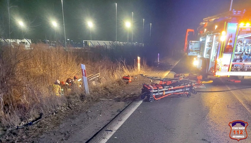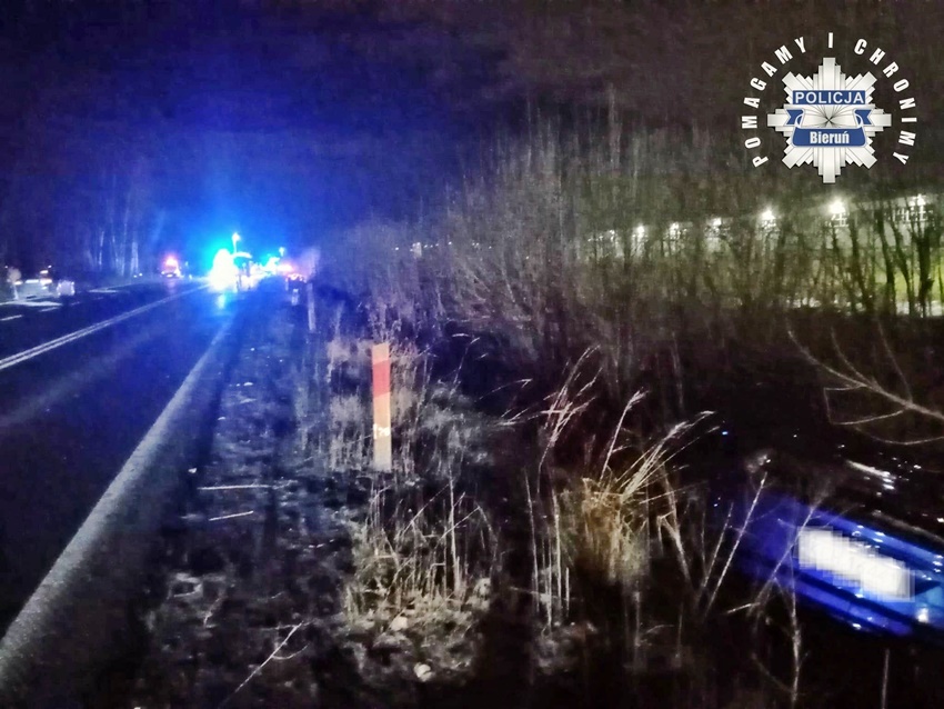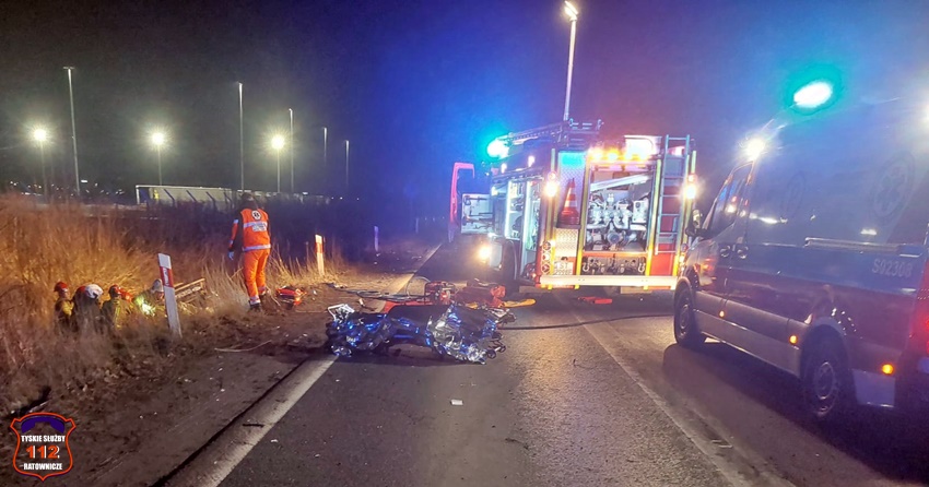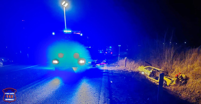 25 stycznia około godziny 21 w Bieruniu na ul. Turyńskiej przy skrzyżowaniu z ul. Wylotową doszło do czołowego zderzenia dwóch samochodów osobowych. W zdarzeniu brały udział pojazdy marki VW oraz Ford. Po zderzeniu obydwa pojazdy zatrzymały się w przydrożnym rowie. Świadkowie zdarzenia zawiadomili służby ratunkowe. Do działań zadysponowane zostały zastępy strażaków OSP Bieruń Stary, JRG Tychy oraz ratownicy medyczni WPR Katowice i Policjanci KPP Bieruń. Po przybyciu na miejsce okazało się, że kierowca VW jest zakleszczony we wraku swojego pojazdu, a dwie osoby podróżujące Fordem nie wymagają pomocy. Ford po zderzeniu zatrzymał się około 100m dalej. Ruch w miejscu zdarzenia został zablokowany, a Policjanci KPP Bieruń wyznaczyli objazdy. Strażacy przy użyciu narzędzi hydraulicznych uwolnili poszkodowanego 33 – letniego kierowcę VW i przekazali go ratownikom medycznym. W między czasie w pobliżu miejsca wypadku wylądowała załoga latającej karetki LPR Ratownik 6 z Kokotowa. Podczas diagnostyki u poszkodowanego mężczyzny doszło do zatrzymania krążenia. Niestety pomimo wdrożenia zaawansowanych procedur medykom nie udało się przywrócić funkcji życiowych. Mężczyzna zmarł w wyniku odniesionych obrażeń. 44 – letni kierowca Forda oraz jego pasażerka zostali przewiezieni do KPP Bieruń celem przeprowadzenia czynności. Dodatkowo mężczyźnie została pobrana krew do badań. Na miejsce wezwany został technik kryminalistyki, grupa – dochodzeniowo – śledcza oraz prokurator. Pojazdy biorące udział w zdarzeniu zostały zabezpieczone do dalszych czynności. Ze wstępnych ustaleń pracujących na miejscu Policjantów wynika, że jadący od Tychów w stronę Bierunia, kierowca Forda nie dostosował prędkości do warunków panujących na drodze, wpadł w poślizg i uderzył w jadącego w stronę Tychów VW. Policjanci KPP Bieruń pod nadzorem tyskiej prokuratury prowadzą śledztwo w tej sprawie. Rodzinie tragicznie zmarłego mężczyzny składamy Najszczersze kondolencje.