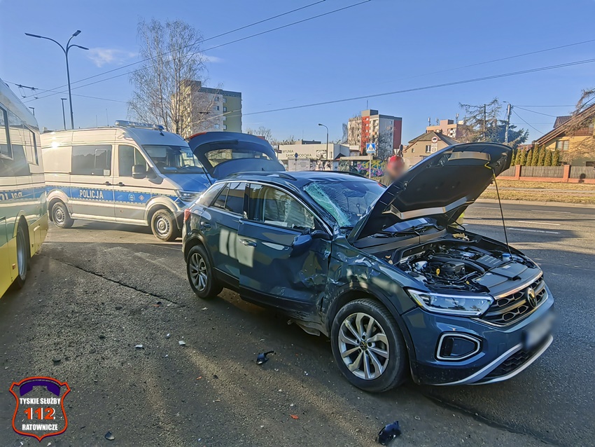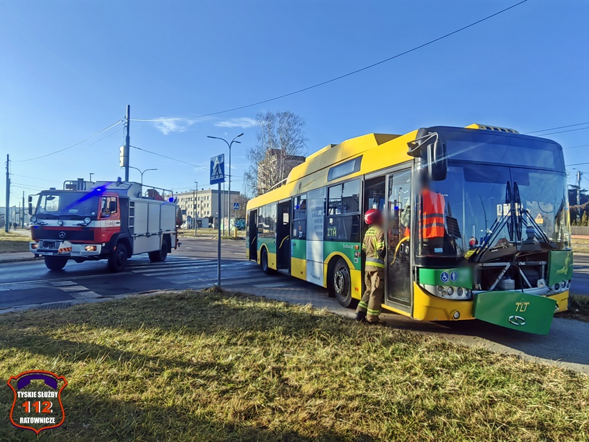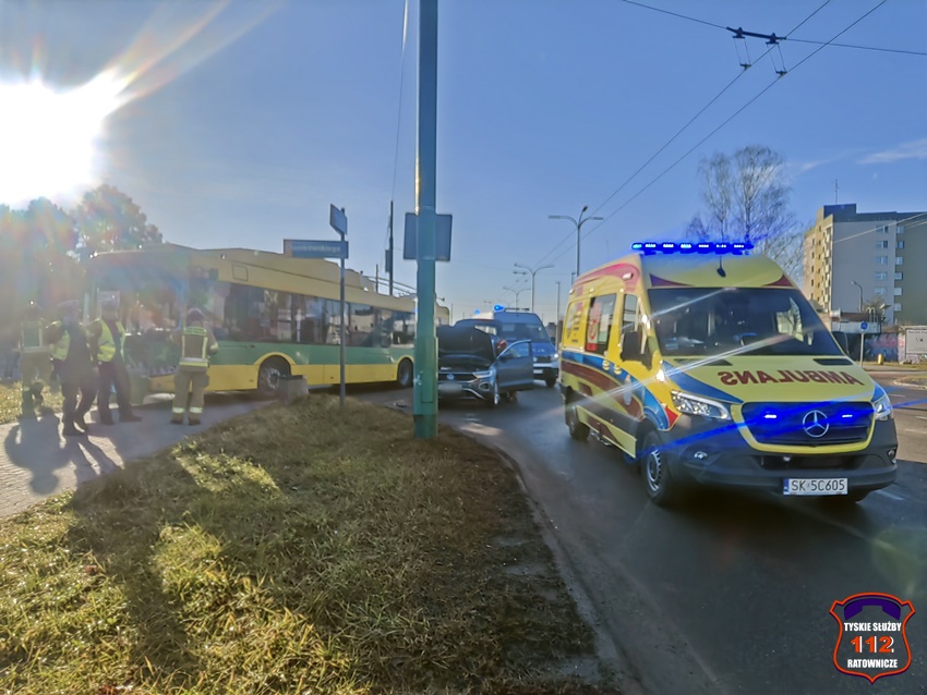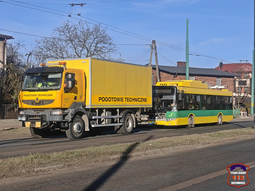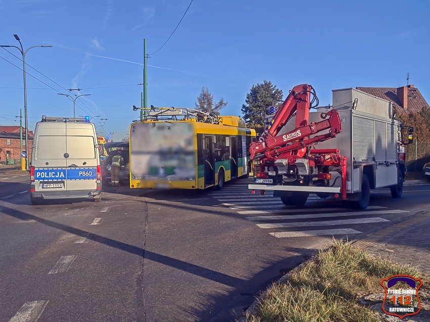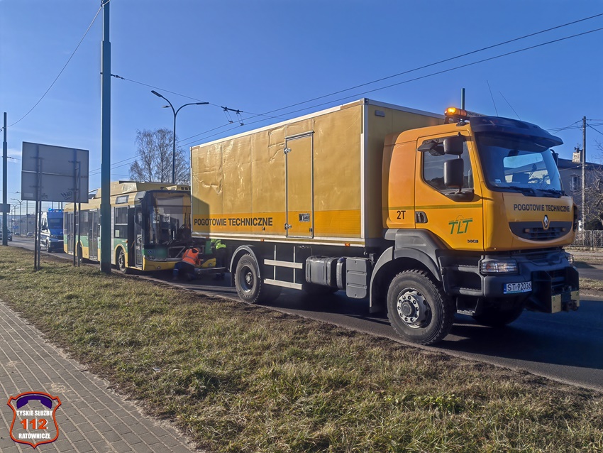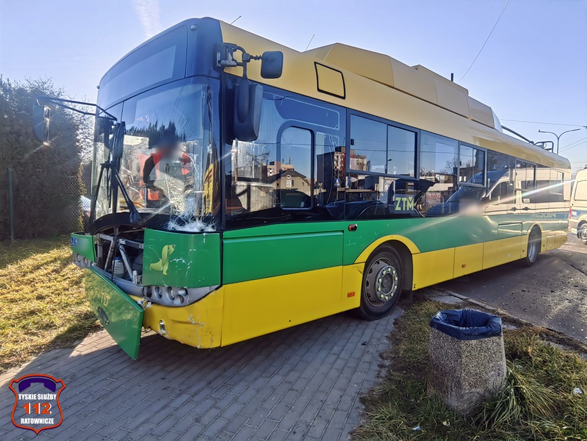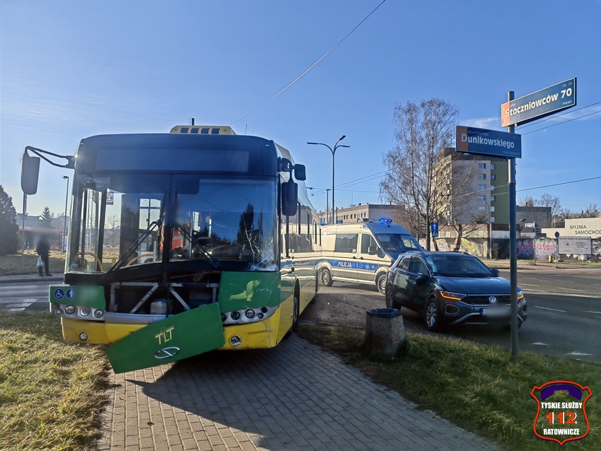 30 stycznia o godzinie 9 na ul. Stoczniowców 70 w rejonie skrzyżowania z ul. Sublańską i ul. Dunikowskiego doszło do czołowo – bocznego zderzenie trolejbusu marki Solaris oraz samochodu osobowego marki VW. W wyniku zdarzenia kierowca trolejbusu wjechał na sąsiadujący z drogą chodnik. Na szczęście nikt tam nie oczekiwał na możliwość przejścia przez jezdnię. W trolejbusie podróżowało 15 osób, a samochodem osobowym podróżowała tylko kierująca nim kobieta. Do działań ratowniczych zadysponowani zostali policjanci WRD KMP Tychy, ratownicy medyczni WPR Katowice oraz strażacy JRG Tychy. W trakcie działań prawy pas w kierunku ul. Harcerskiej był zablokowany. Na szczęście w wyniku zdarzenia nikt nie ucierpiał. Z ustaleń pracujących na miejscu policjantów wynika, że kierująca osobówką kobieta włączając się do ruchu (skręt w lewo) z ul. Sublańskiej w ul. Stoczniowców 70 nie zachowała należytej ostrożności i wjechała wprost pod nadjeżdżający z jej prawej strony trolejbus. Kierująca VW została uznana winną spowodowania kolizji i została ukarana mandatem karnym. Oba pojazdy zostały odholowane z miejsca zdarzenia.
