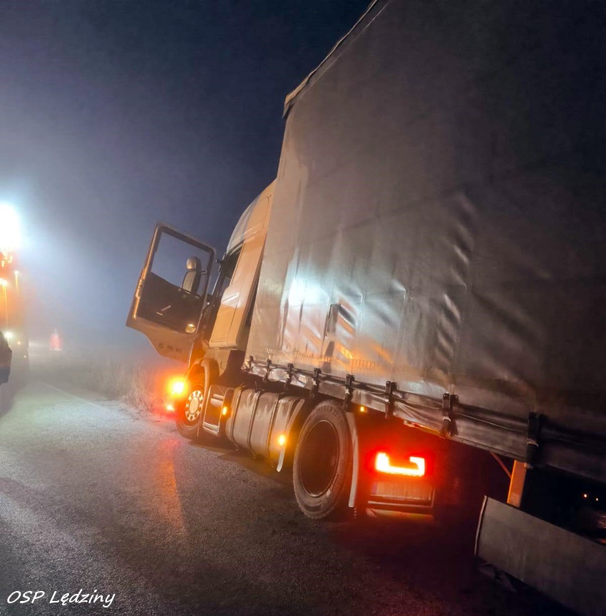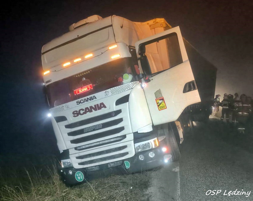 25 lutego około godziny 0:15 dyżurny SK KM PSP Tychy otrzymał zgłoszenie o ciągniku siodłowym marki Scania z naczepą w przydrożnym rowie na trasie S1 w Lędzinach. Na miejsce zgłoszenia natychmiast zadysponowane zostały zastępy strażaków OSP Lędziny, JRG Tychy oraz patrol Policji. Do zdarzenia doszło przy stacji paliw Orlen na pasie w kierunku Mysłowic. Na szczęście po przybyciu na miejsce okazało się, że pojazd jest tylko częściowo w rowie, a kierowca nie wymaga pomocy medycznej. 54 – latek w chwili zdarzenia był trzeźwy. Za zdarzenie został ukarany mandatem karnym. Usunięciem pojazdu i odholowaniem zajęła się wezwana na miejsce pomoc drogowa.