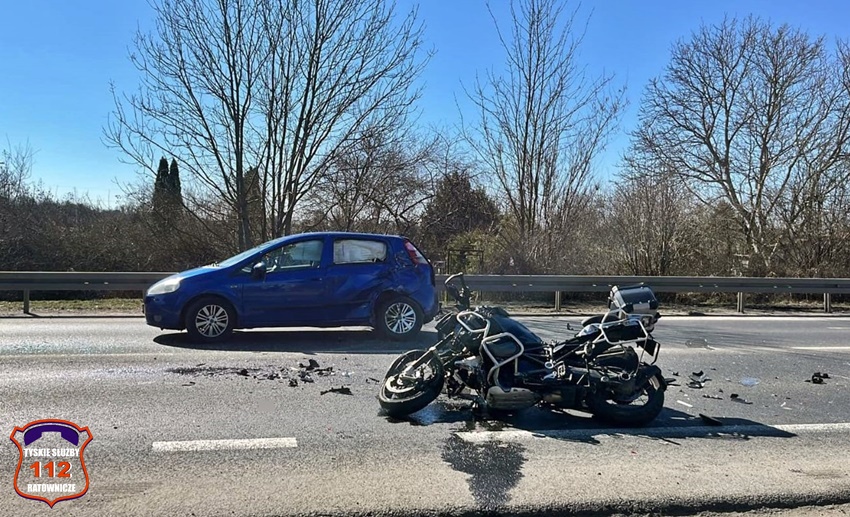 20 marca około godziny 10:30 na ul. Oświęcimskiej przy skrzyżowaniu z ul. Lawendową doszło do zdarzenia drogowego, w którym brał udział samochód osobowy marki Fiat oraz motocykl BMW. Na miejsce zdarzenia zadysponowani zostali ratownicy medyczni WPR Katowice, załoga Lotniczego Pogotowia Ratunkowego – Ratownik 4, strażacy JRG Tychy oraz policjanci KMP Tychy. Na czas działań ruch w miejscu zdarzenia został całkowicie zablokowany. Ratownicy wdrożyli medyczne czynności ratunkowe wobec poszkodowanego motocyklisty, a policjanci wyznaczyli objazdy. Dla jadących w stronę Bieruniu ul. Jaworową – Grota – Roweckiego, al. Niepodległości – ul. Beskidzką – ul. Oświęcimską, a dla jadących w stronę Mikołowa ul. Beskidzką – al. Niepodległości – ul. Grota – Roweckiego – ul. Jaworową – ul. Oświęcimską. 28 – letni motocyklista z licznymi obrażeniami ciała został przetransportowany do szpitala w Katowicach Ochojcu. 50 – letniej kobiecie kierującej osobowym Fiatem nic się nie stało. Ze wstępnych ustaleń pracujących na miejscu policjantów wynika, że kierująca osobówką jadąc ul. Oświęcimska w kierunku browaru z niewyjaśnionych przyczyn zjechała swoim pojazdem w lewą stronę i zajechała drogę motocykliście, który najprawdopodobniej był w trakcie manewru jej wyprzedzania i doprowadziła do zdarzenia. Na miejscu zdarzenia pracował również policyjny technik kryminalistyki. Utrudnienia w ruchu trwały blisko trzy godziny. Policjanci KMP Tychy prowadzą dalsze postępowanie w tej sprawie.