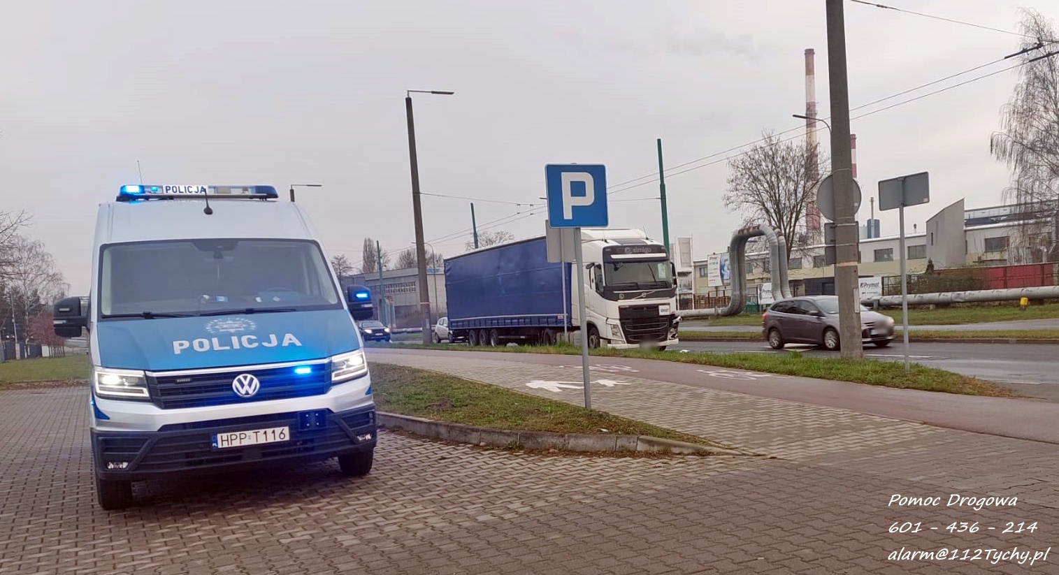 2 kwietnia około godziny 5:45 na ul. Towarowej przed skrzyżowaniem z ul. Cielmicką w kierunku ul. Serdecznej doszło do zdarzenia drogowego z udziałem dwóch samochodów osobowych marki Opel oraz ciągnika siodłowego Volvo naczepą.