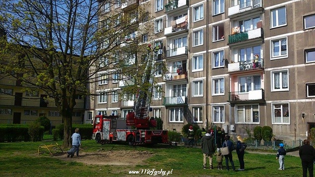 12 kwietnia około godziny 10.10 do dyżurnego tyskiej Straży Pożarnej wpłynęło zgłoszenie od opiekunki, że nie może wejść do mieszkania swojego podopiecznego na ul. Dębowej. Na miejsce natychmiast wysłane zostały dwa zastępy z JRG Tychy (GBA, SD), patrol Policji oraz karetka pogotowia. Przy użyciu drabiny mechanicznej strażacy dostali się do mieszkania i otwarli drzwi. Po wejściu do mieszkania okazało się, że mężczyzna ma skaleczoną rękę, która została natychmiast opatrzona. Około godziny 10.40 działania zostały zakończone i zastępy powróciły do koszar.